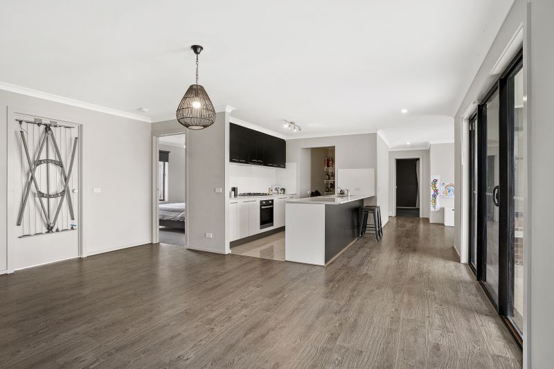 Directly opposite the new Bannockburn P-12 College, and only a short distance from the shopping precinct, is this lovley 3br home. Offering master bedroom with walk in robe and ensuite, open plan kitchen with large pantry, electric oven and stove, dishwasher and large bench, adjoining meals area and a second living area. There are two further bedrooms, a family bathroom with shower and bath and separate toilet. With split system heating and cooling, there is also an undercover alfresco area and a well sized laundry and a double remote entry garage with internal access. Well maintained throughout, this is a property well worth an inspection.