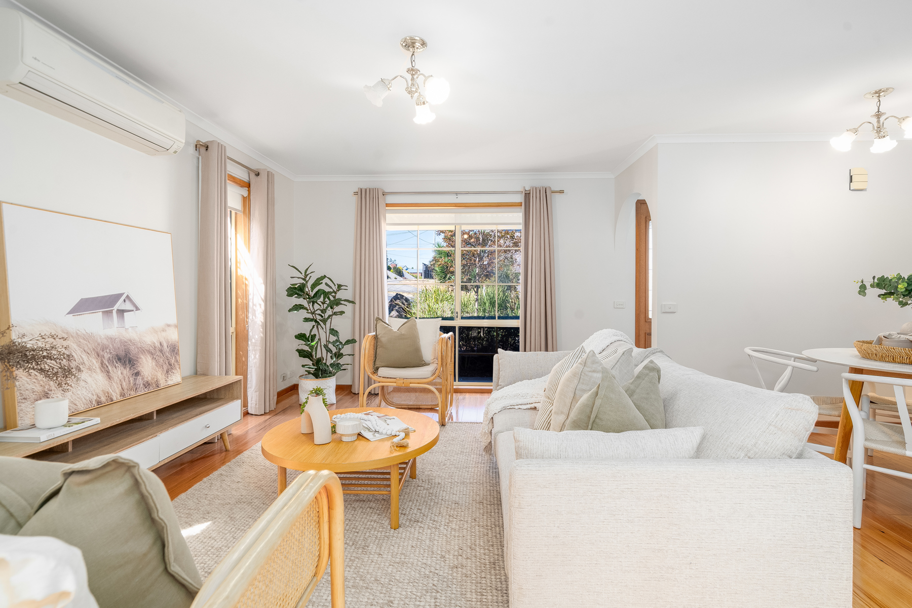 Freshly repainted throughout, the home reveals a light-filled open-plan living, kitchen and dining area that forms the welcoming heart of the residence. Modern flooring and new blinds complement the updated interiors, while the stylish kitchen is well equipped with a gas cooktop and electric oven. The bathroom and separate toilet provide excellent functionality, and three bedrooms offer comfortable accommodation. A split system ensures year-round comfort, with solar panels enhancing energy efficiency. Completing this lovely home is a two-car garage and a thoughtfully designed layout that supports easy, low-maintenance living.