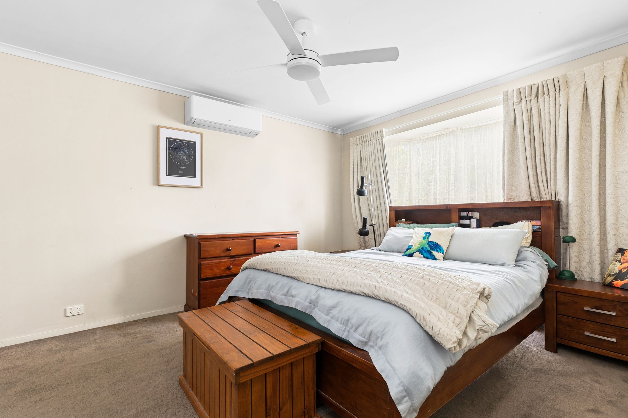 Additional features include split-system heating and cooling for year-round comfort, along with ceiling fans throughout.