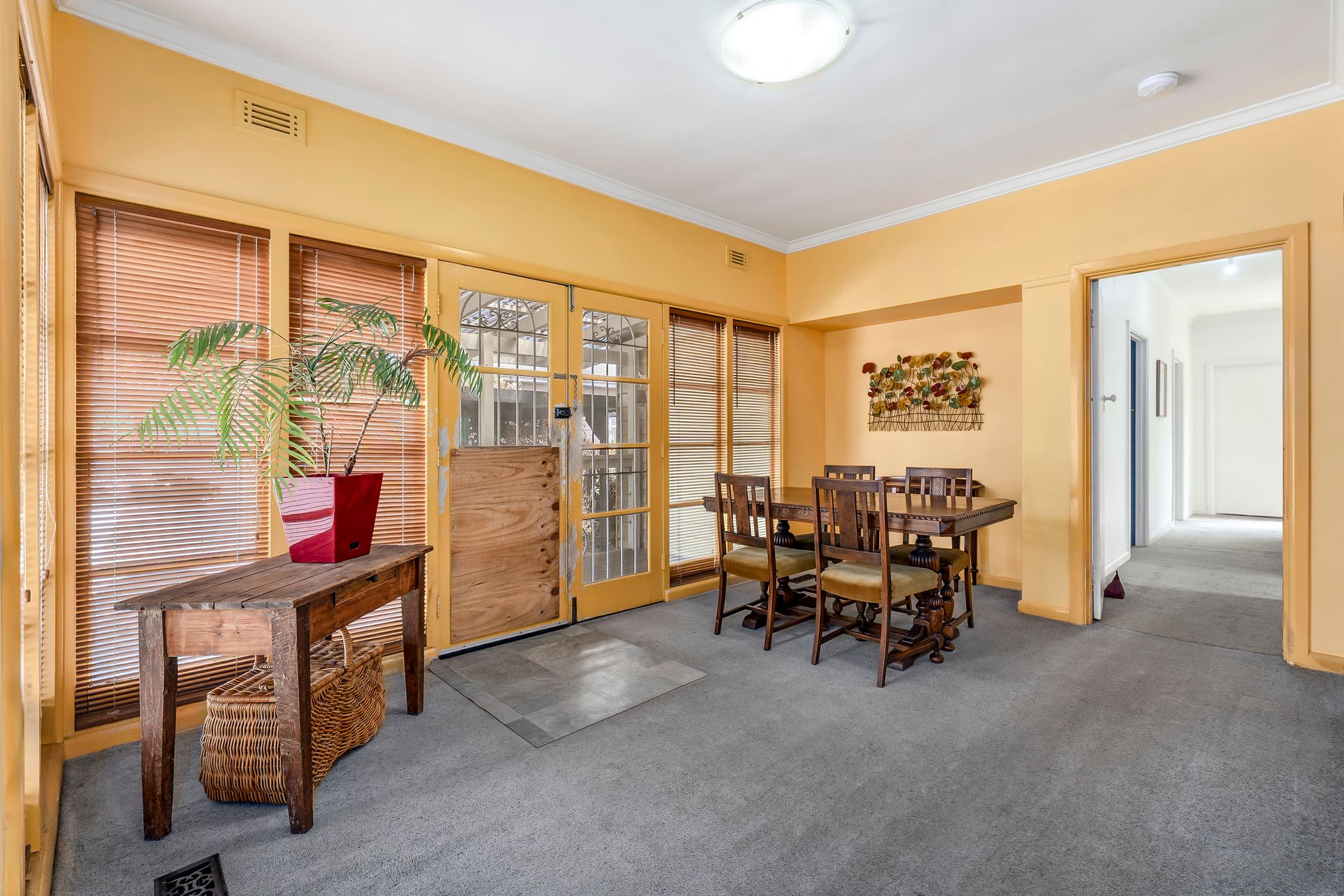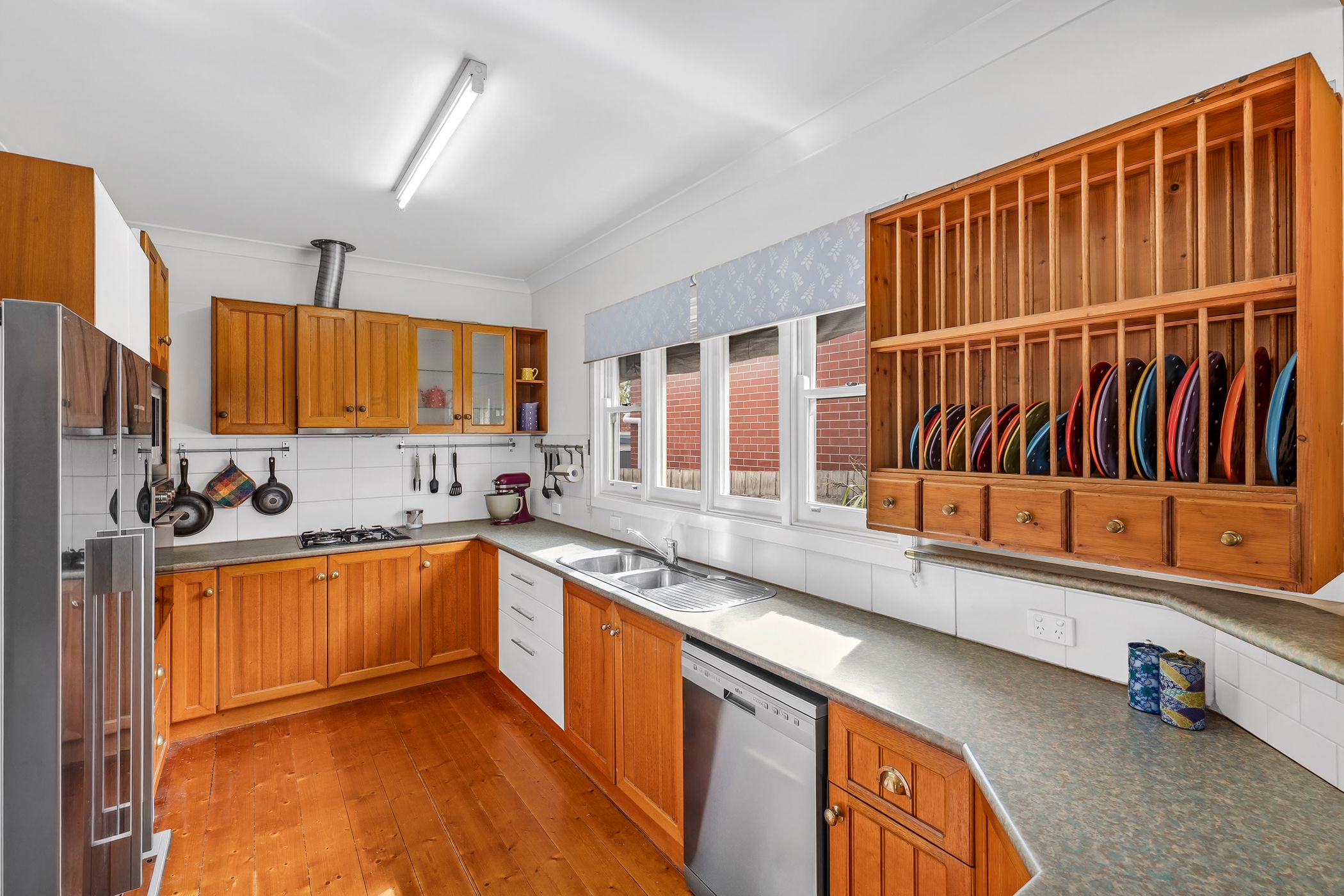 The existing home offers a practical and adaptable layout, ready to be transformed. An open-plan living area welcomes you on entry, providing flexibility for a contemporary redesign. The kitchen is functional as is, featuring warm timber cabinetry, a Solt dishwasher, oven, four-burner gas cooktop and built-in pantry, while also offering clear scope for a stylish upgrade.
