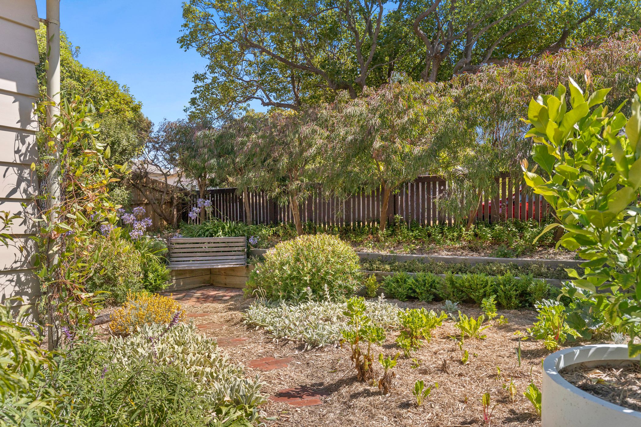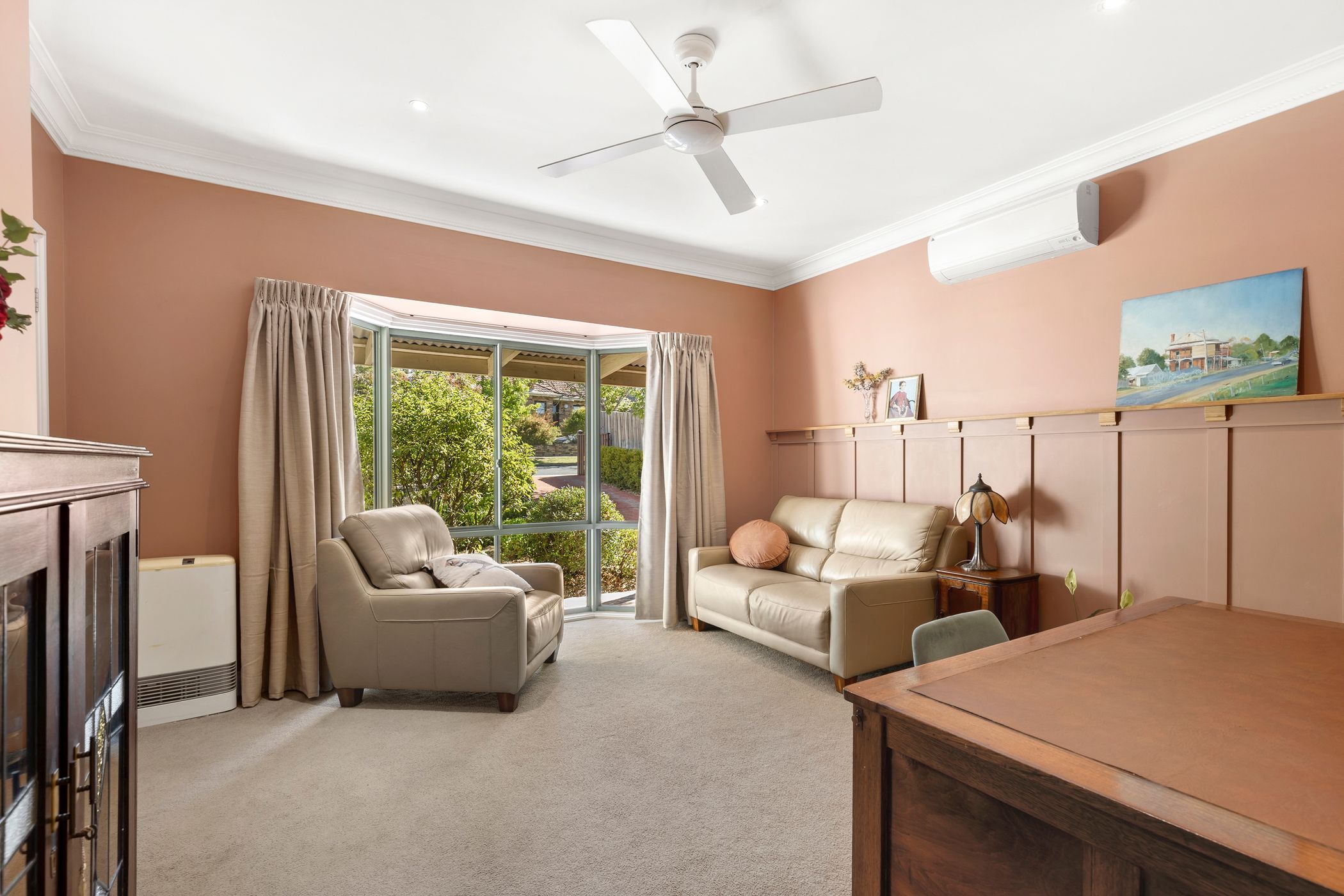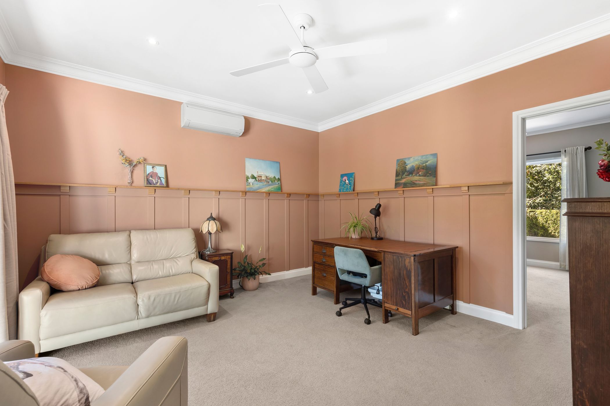 Recently refreshed with a newly painted exterior and interiors, the residence welcomes you with high ceilings and abundant natural light, offering a seamless blend of classic character and comfortable family living. At the heart of the home, an open-plan living, dining and kitchen zone enjoys a lovely outlook over a cottage-inspired front garden, complete with a productive vegetable patch. The kitchen showcases rich timber cabinetry, quality stainless steel appliances and a built-in pantry, complemented by a conveniently located Euro-style laundry. Double glazing helps regulate the indoor climate, while multiple split-system air conditioners, a gas heater and ceiling fans ensure year-round comfort.