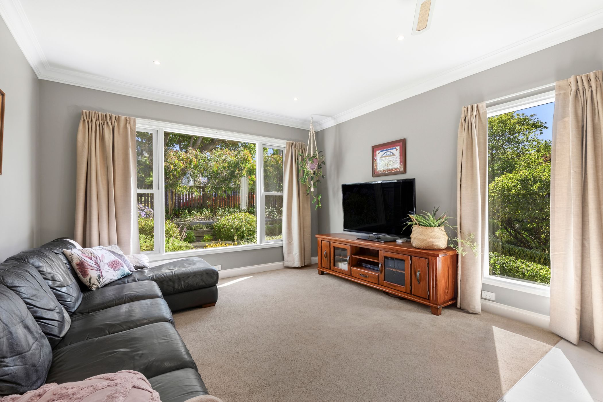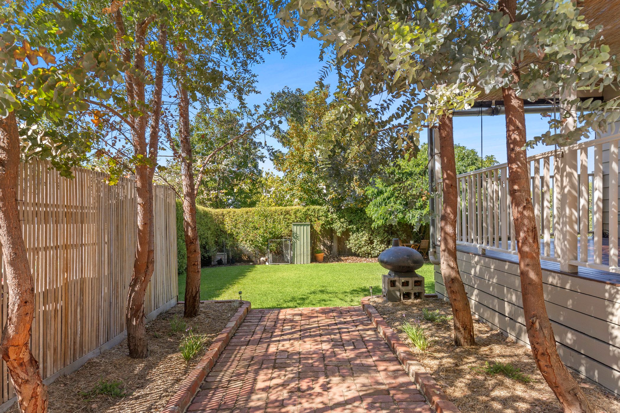 Step outside to a covered alfresco deck bathed in beautiful morning sunshine - the perfect spot for your morning coffee, relaxed entertaining with loved ones, or simply soaking in the peaceful surroundings. The private rear yard offers space for play and gardening, and includes apple trees, two garden sheds along with a double tandem carport.