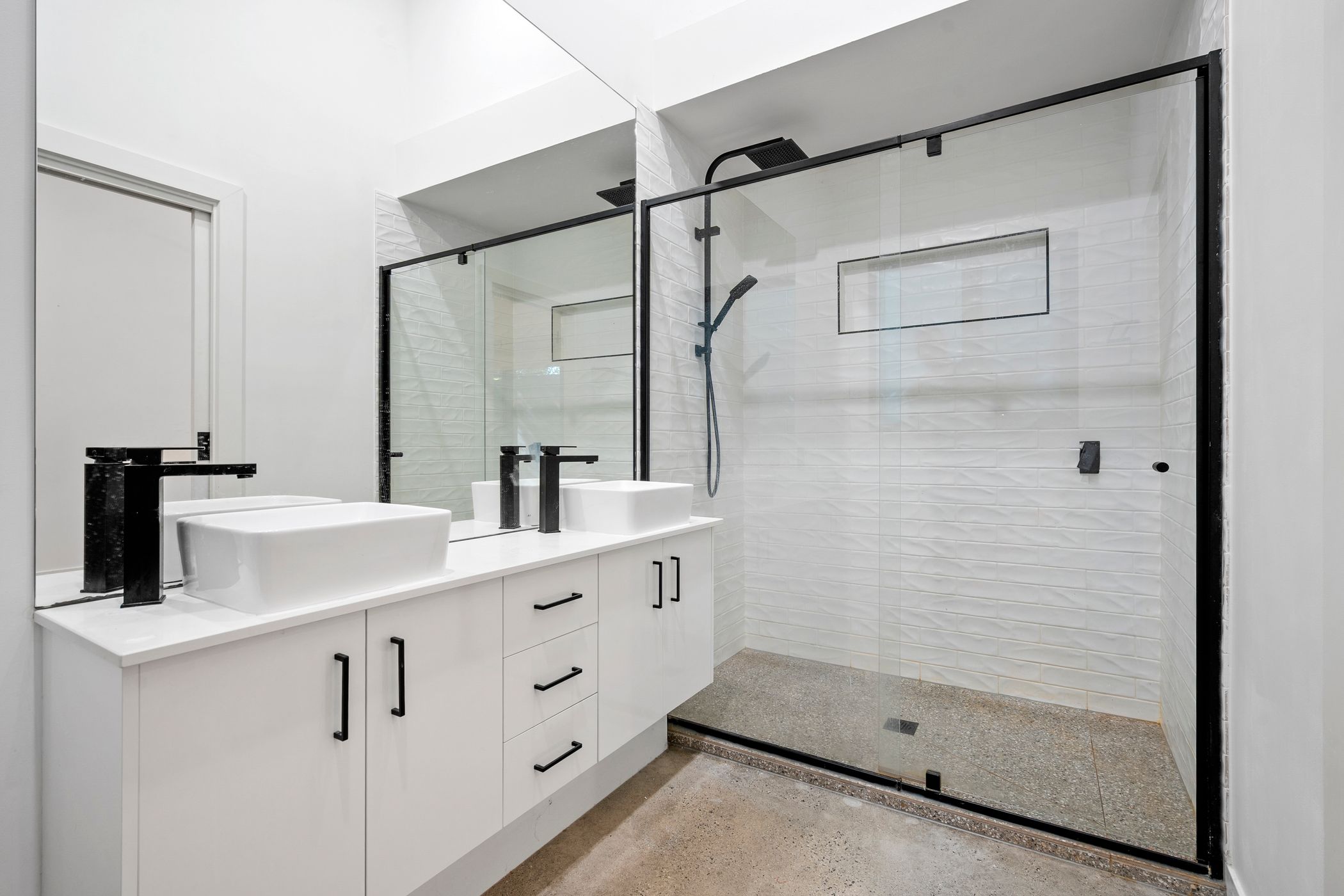 Both the primary and second bedrooms are thoughtfully designed with their own ensuites and walk-in robes, while a mezzanine-level home office or guest retreat adds further flexibility. Outdoors, astro turf, veggie planter boxes and an undercover entertaining area create a tranquil space to relax and unwind.