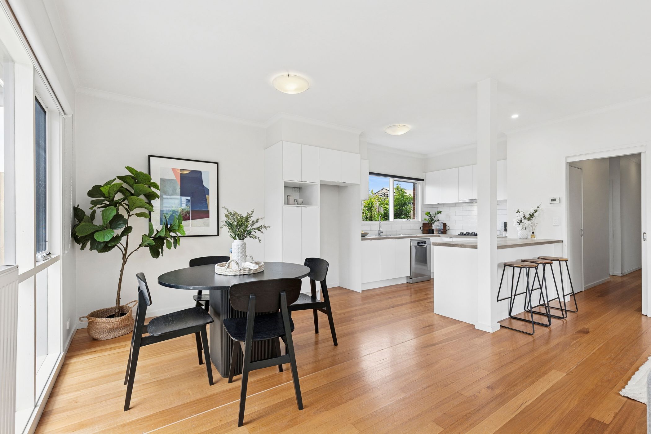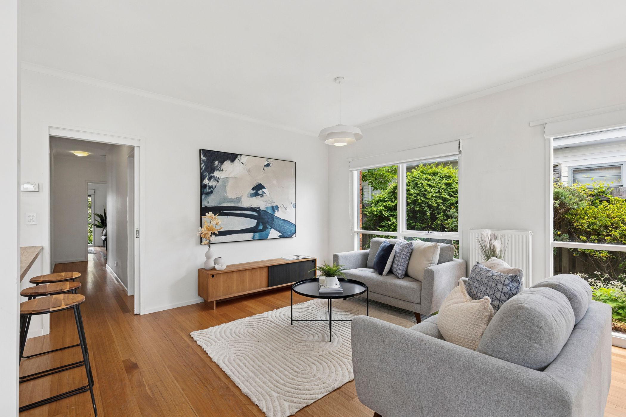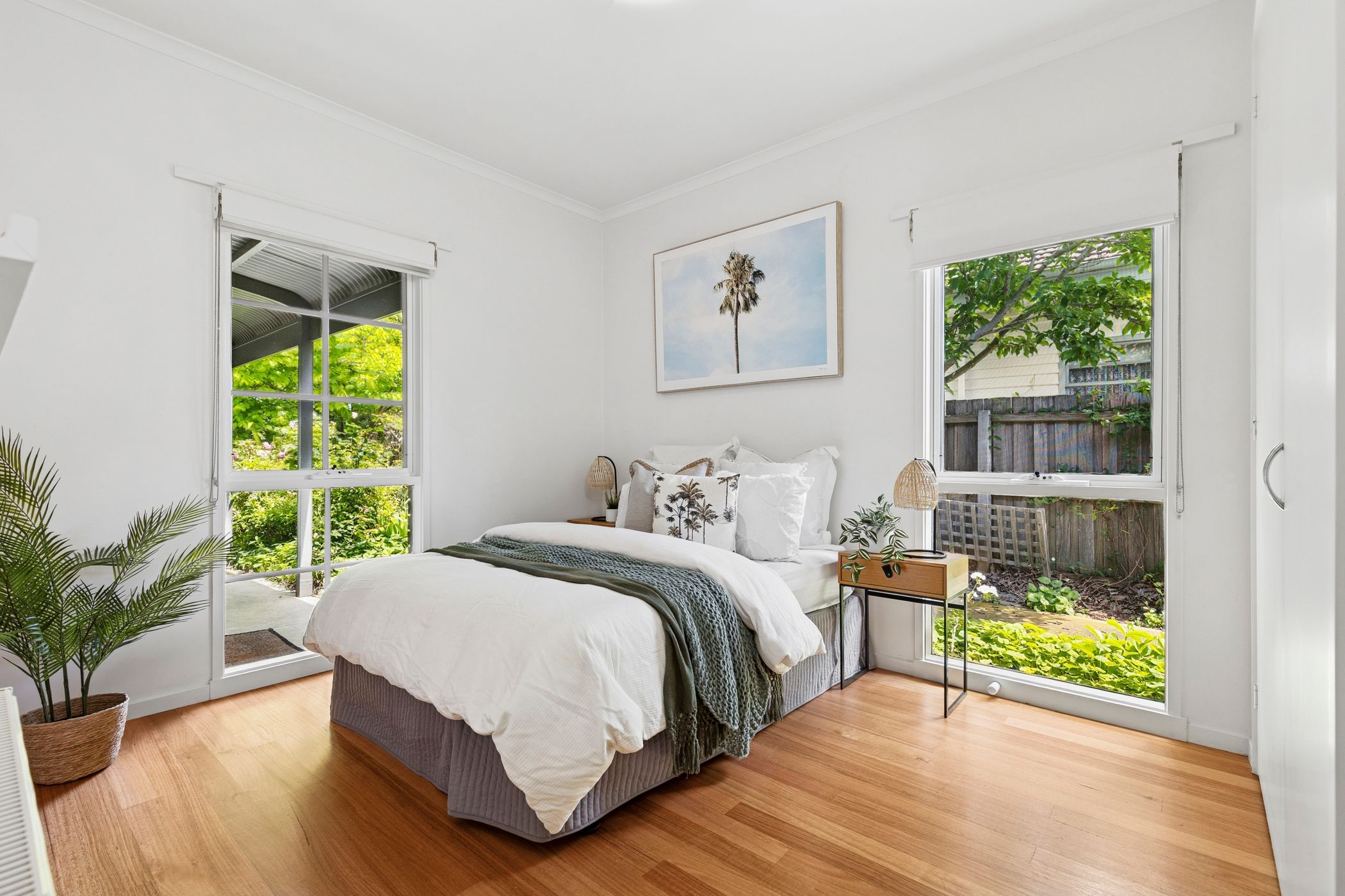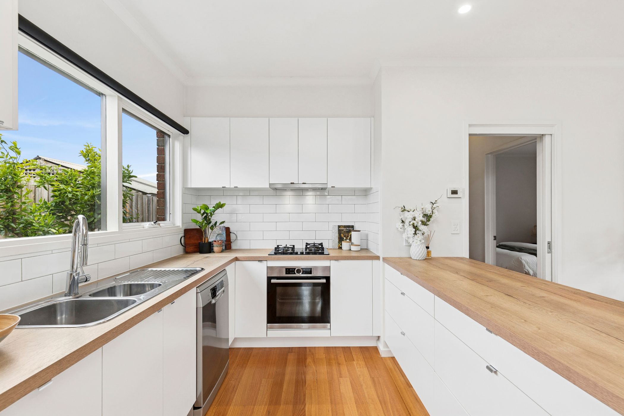 Step inside and you'll instantly feel at home. High ceilings, polished timber floorboards and a crisp white palette create a bright, airy ambience. The open plan living/kitchen/dining zone is bathed in natural light and captures leafy garden views, providing an idyllic setting to relax and unwind. Sliding doors open to a private, north-facing yard - perfect for morning coffees, weekend entertaining or simply enjoying the serenity. The contemporary kitchen impresses with stylish timber-look benchtops, quality Bosch appliances and a built-in pantry, blending functionality with enduring appeal.