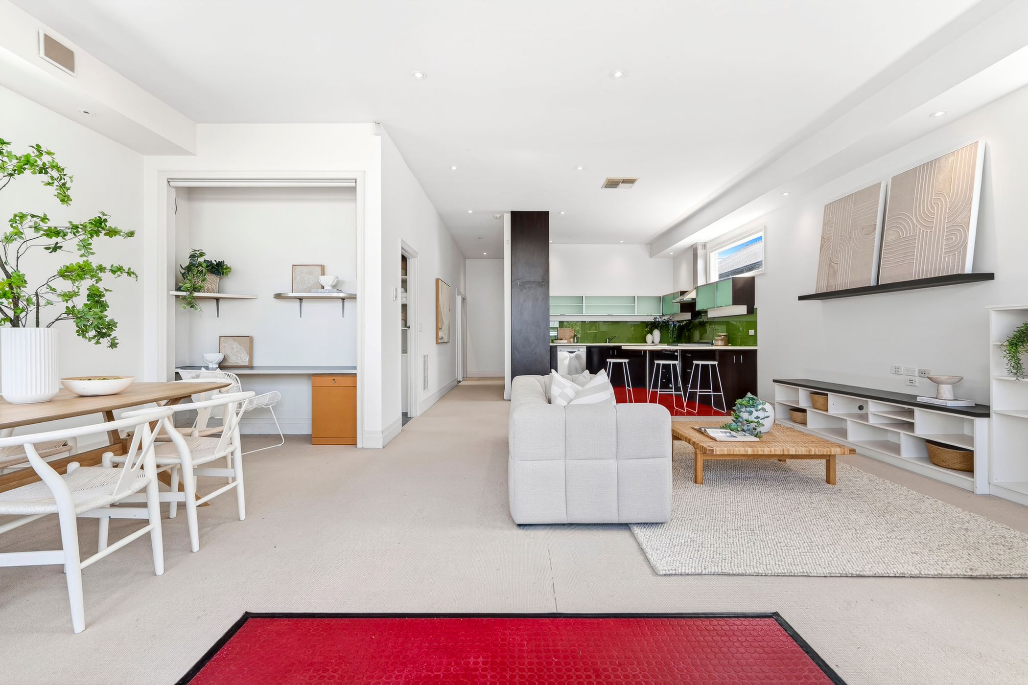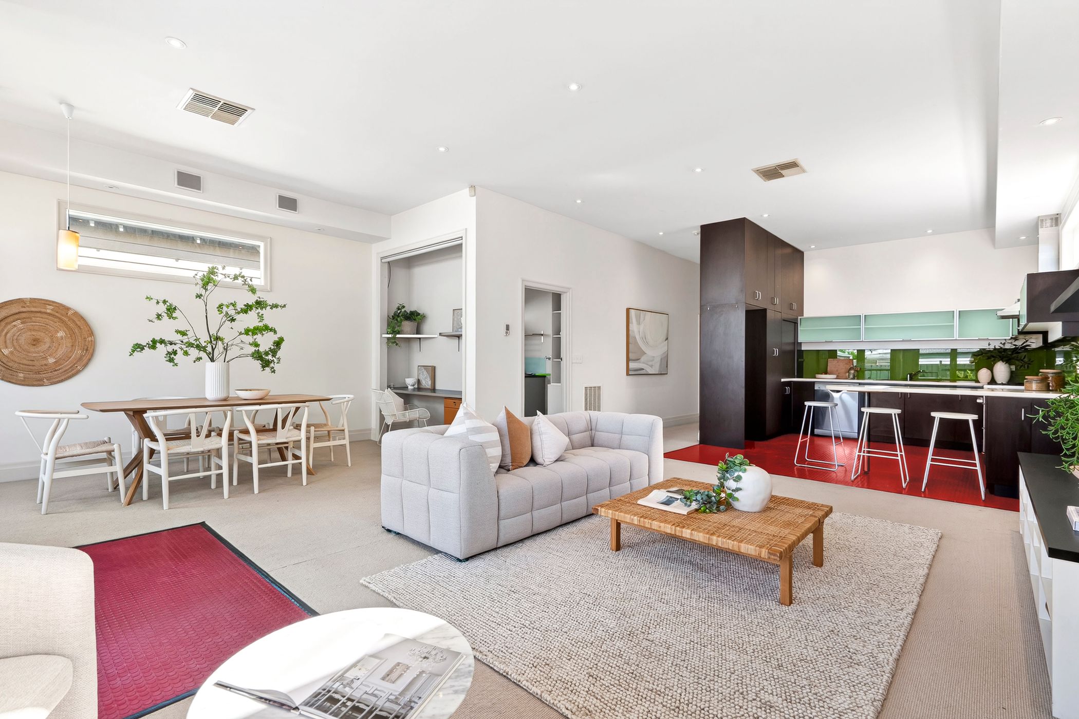 Soaring ceilings, original timber floorboards and beautifully proportioned rooms define the timeless interiors, while plush carpeting adds comfort to the bedrooms. Designed for contemporary living, the expansive rear open-plan domain is bathed in natural light. Feature double windows encourage natural airflow, while French doors extend the living space to a paved alfresco terrace and private rear garden - ideal for relaxed entertaining. A thoughtfully integrated study nook enhances flexibility for those working from home, and the modern kitchen is appointed with stainless steel appliances and a built-in pantry.