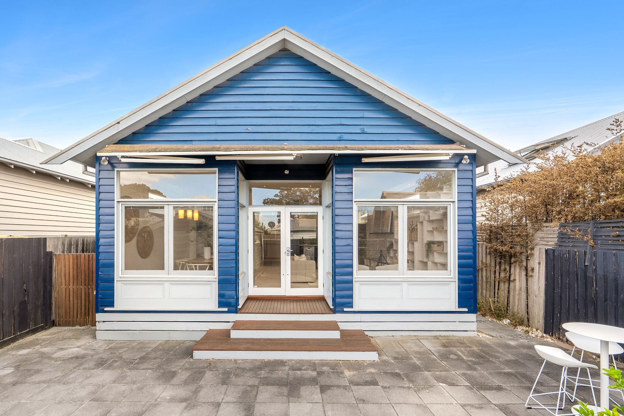 Set within one of East Geelong's most coveted tree-lined enclaves, this classic Californian Bungalow makes a striking first impression. Its bold navy façade signals a residence that confidently embraces colour and character, while honouring its timeless heritage.