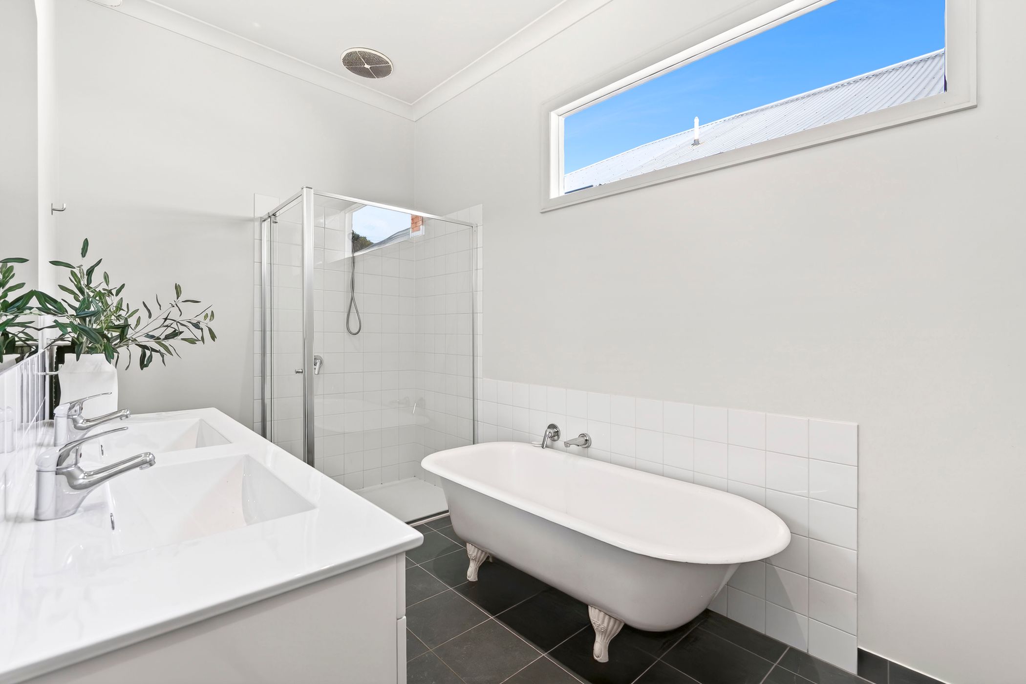 Accommodation comprises three well-sized bedrooms, each fitted with built-in robes. The updated family bathroom retains its charm with a clawfoot bathtub, dual vanities and separate toilet, while a dedicated laundry with external access ensures everyday ease. Ducted heating and evaporative cooling provide year-round comfort. Outdoors, fully fenced grounds are framed by low-maintenance landscaping, raised vegetable beds and a versatile shed suited to storage or workshop use. Convenient rear lane access with the potential for off-street parking truly provides you with the option for ultimate security and comfort.
