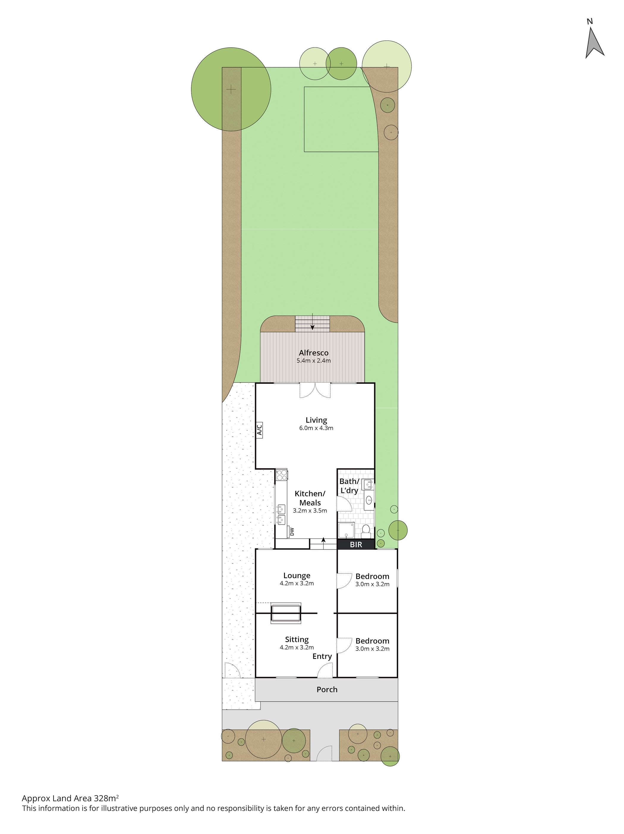 Accommodation comprises two bedrooms, one with built-in robes, serviced by a combined bathroom and laundry. An air conditioner and electric heater provide comfort throughout the seasons.
