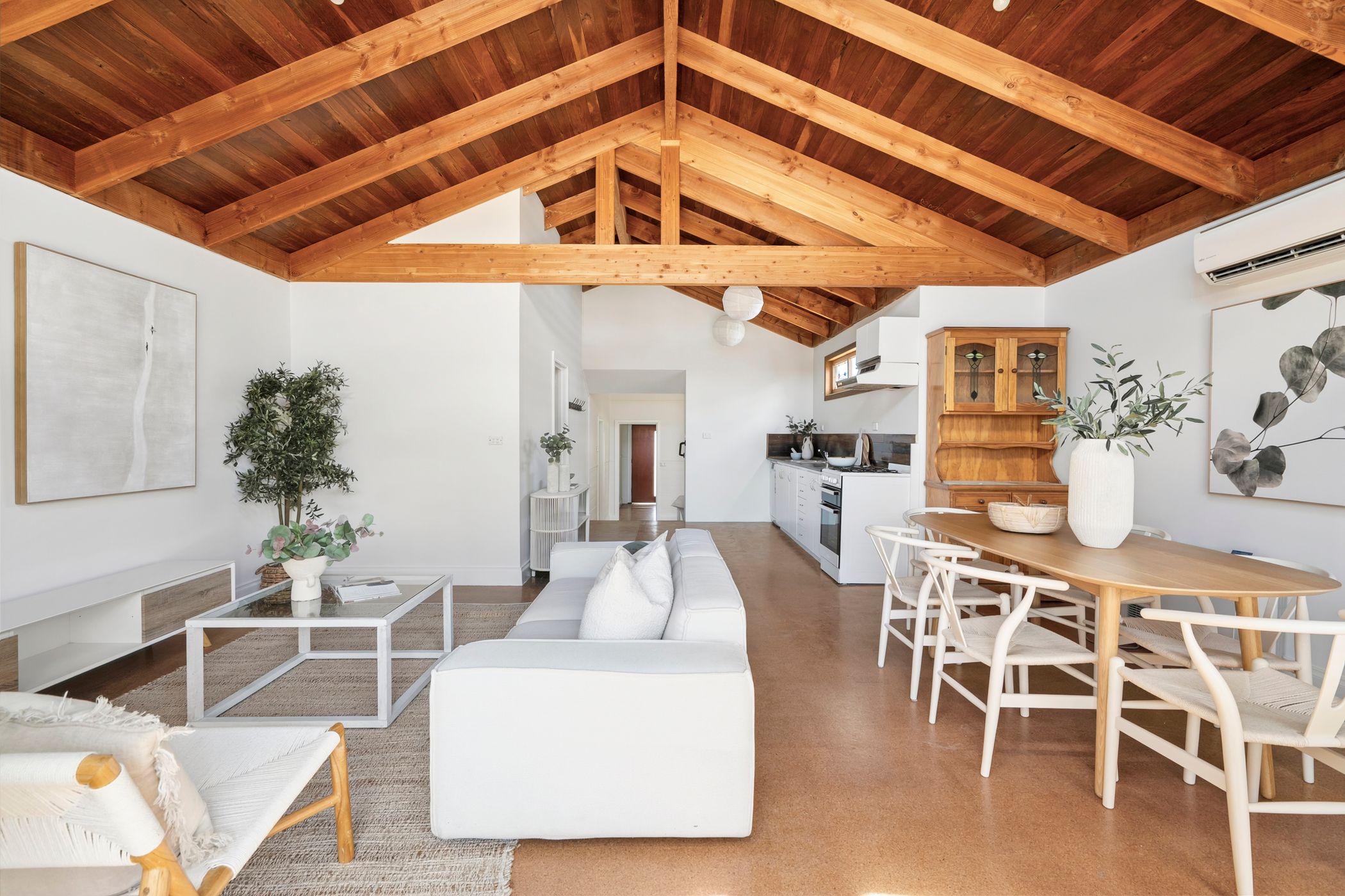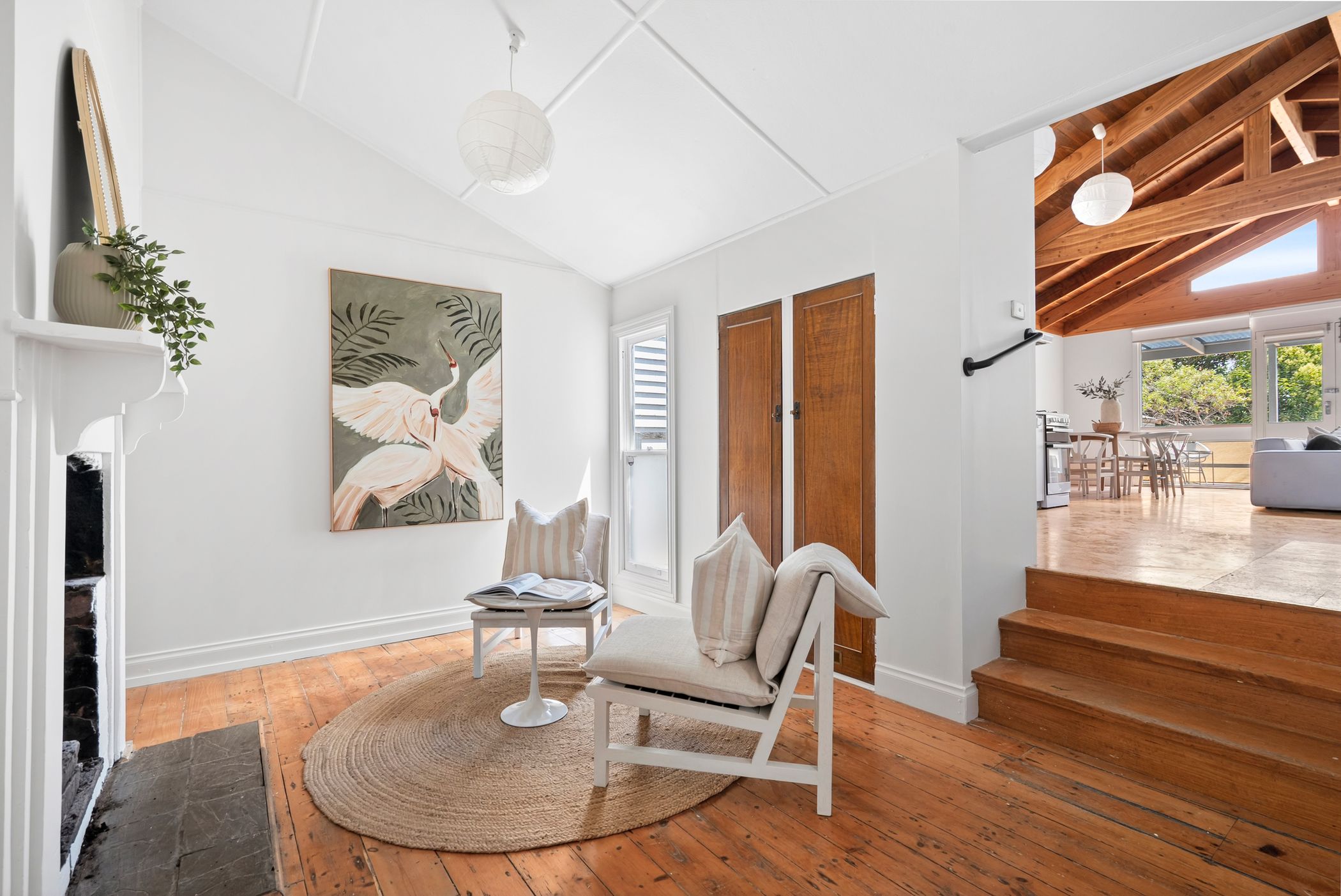Upon entry, you are welcomed into a cosy sitting room complete with an original fireplace, before moving through to a formal lounge, also featuring its own fireplace - ideal spaces for relaxed living or moments of quiet repose. At the rear, an extension opens into a spacious open-plan living/kitchen/dining area, where a striking pitched ceiling enhances the sense of space and natural light. The kitchen blends style with functionality, with timber benchtops, an Esatto dishwasher and a Chef freestanding oven with gas cooktop - perfectly suited to everyday living. Double doors open onto a north-facing undercover deck, creating an inviting indoor-outdoor connection and effortless alfresco entertaining and a generous backyard.