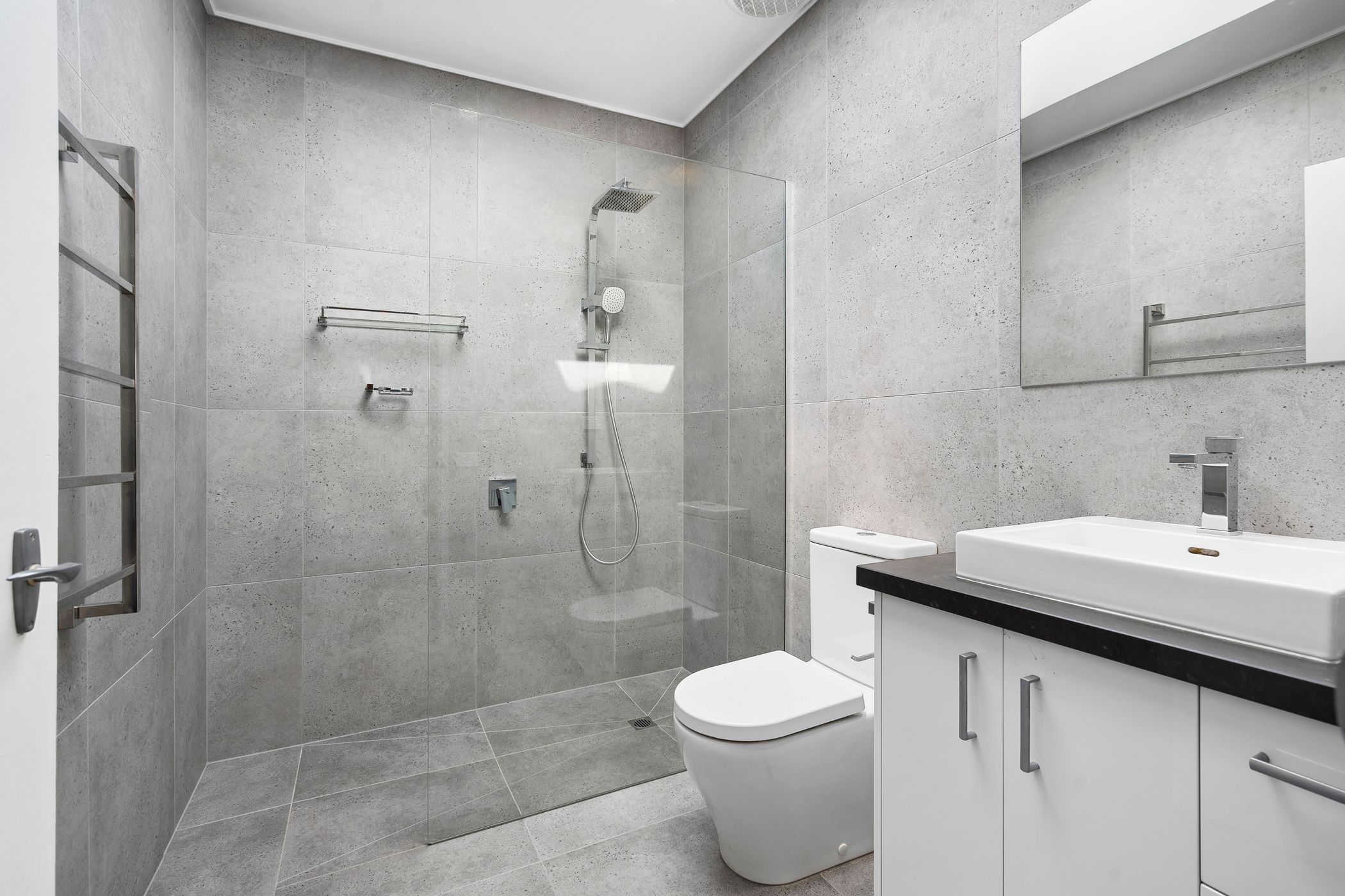 Upstairs features pitched ceilings, three bedrooms, built-in robes, a sun-drenched balcony with views across the treetops and an exquisite bathroom with double shower, vanity and toilet. Park securely in the remote access garage.