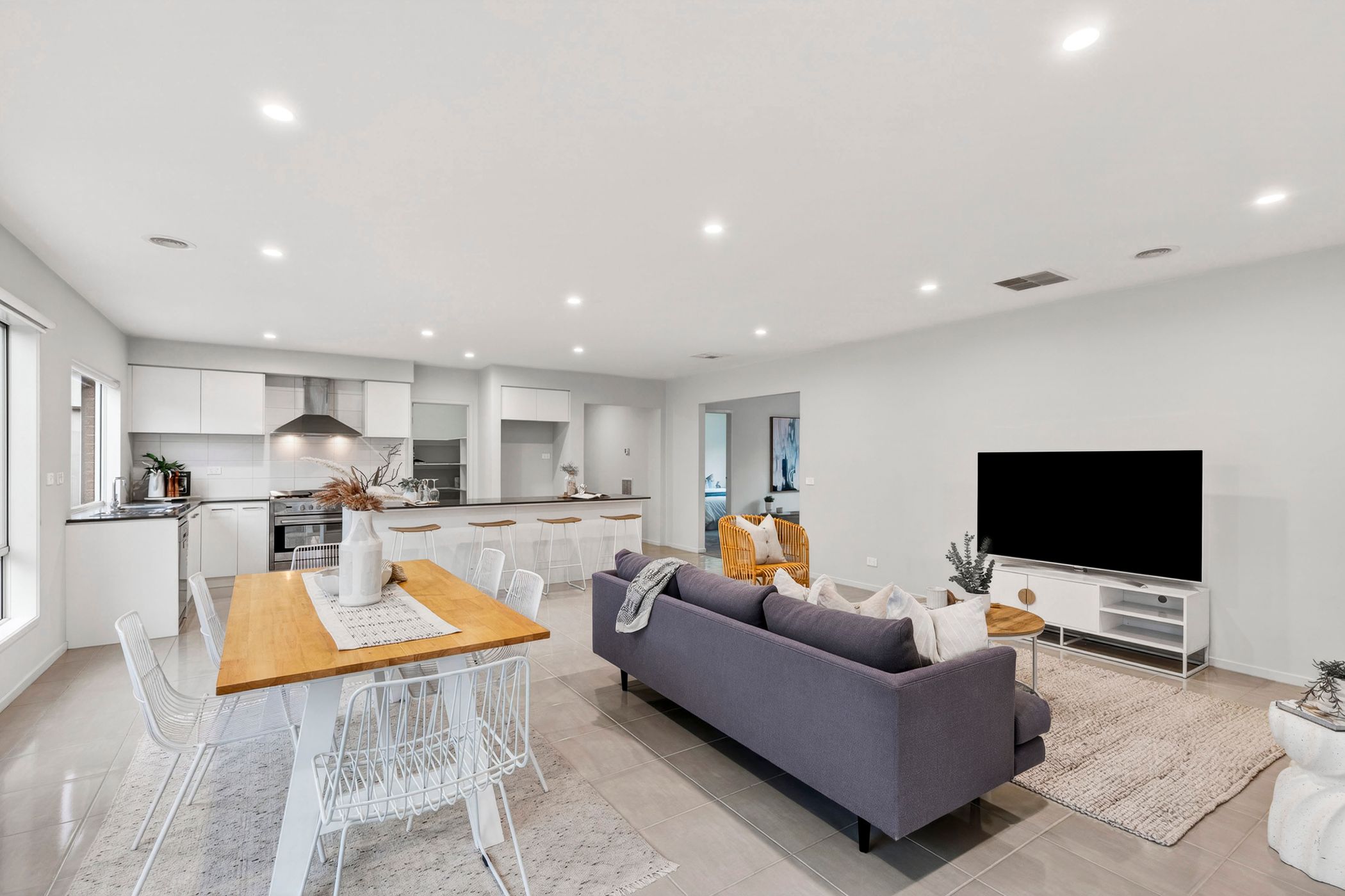 Upon entry, the home immediately showcases its contemporary appeal with square-set ceilings and tiled flooring through the main living zones, complemented by plush carpet in the bedrooms and second living area. At the heart of the home is a bright and spacious open-plan living zone, perfectly suited to everyday family life. This inviting space flows seamlessly to a covered alfresco area and rear yard, creating an ideal setting for entertaining or enjoying time outdoors.