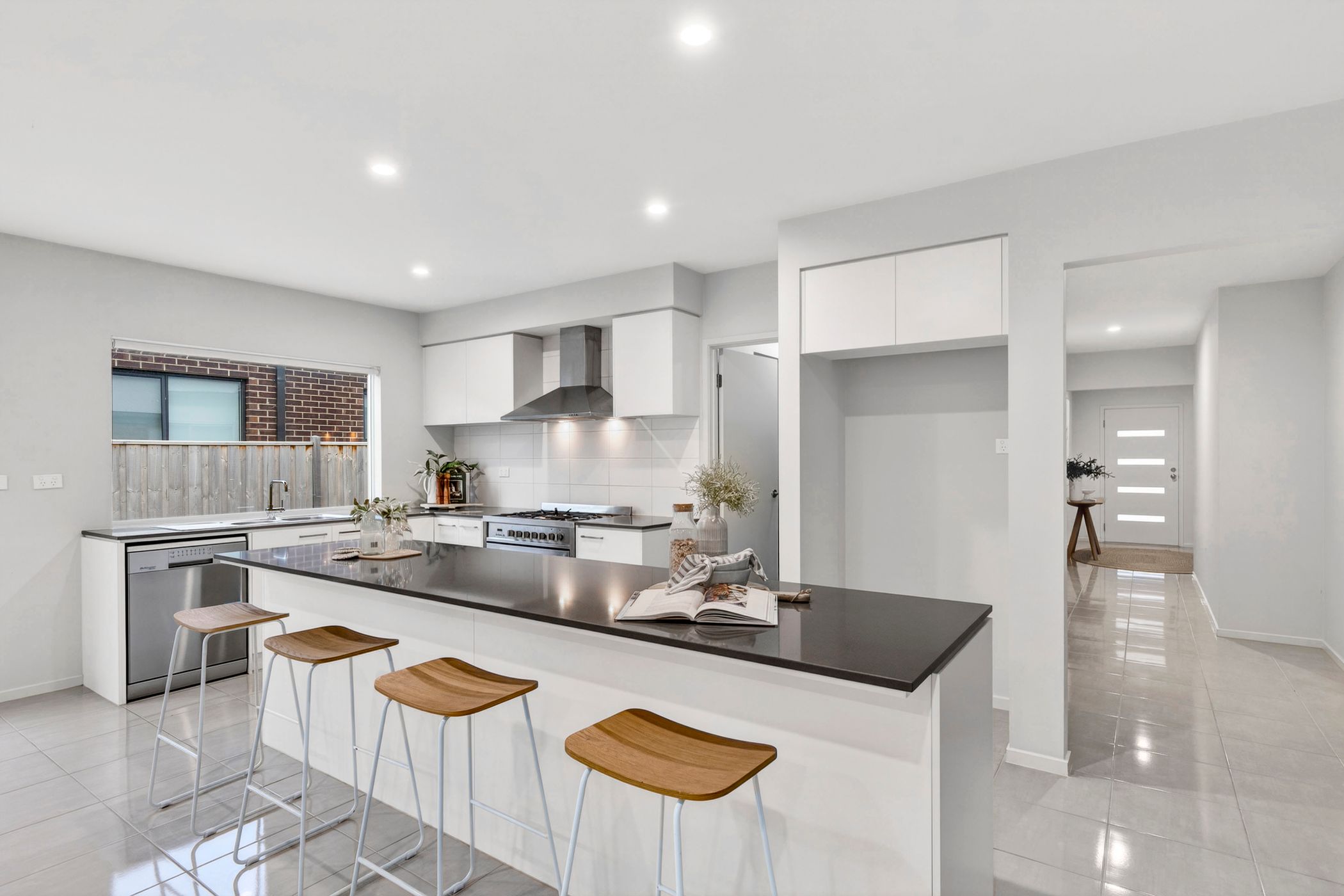 A second living area provides flexibility for growing families, offering a dedicated space for children, a media room or a quiet retreat. The modern kitchen is well-appointed with stone benchtops, stainless steel appliances and a generous island bench that doubles as a breakfast bar. A large walk-in pantry connects conveniently to the adjoining laundry, providing excellent storage and direct external access.