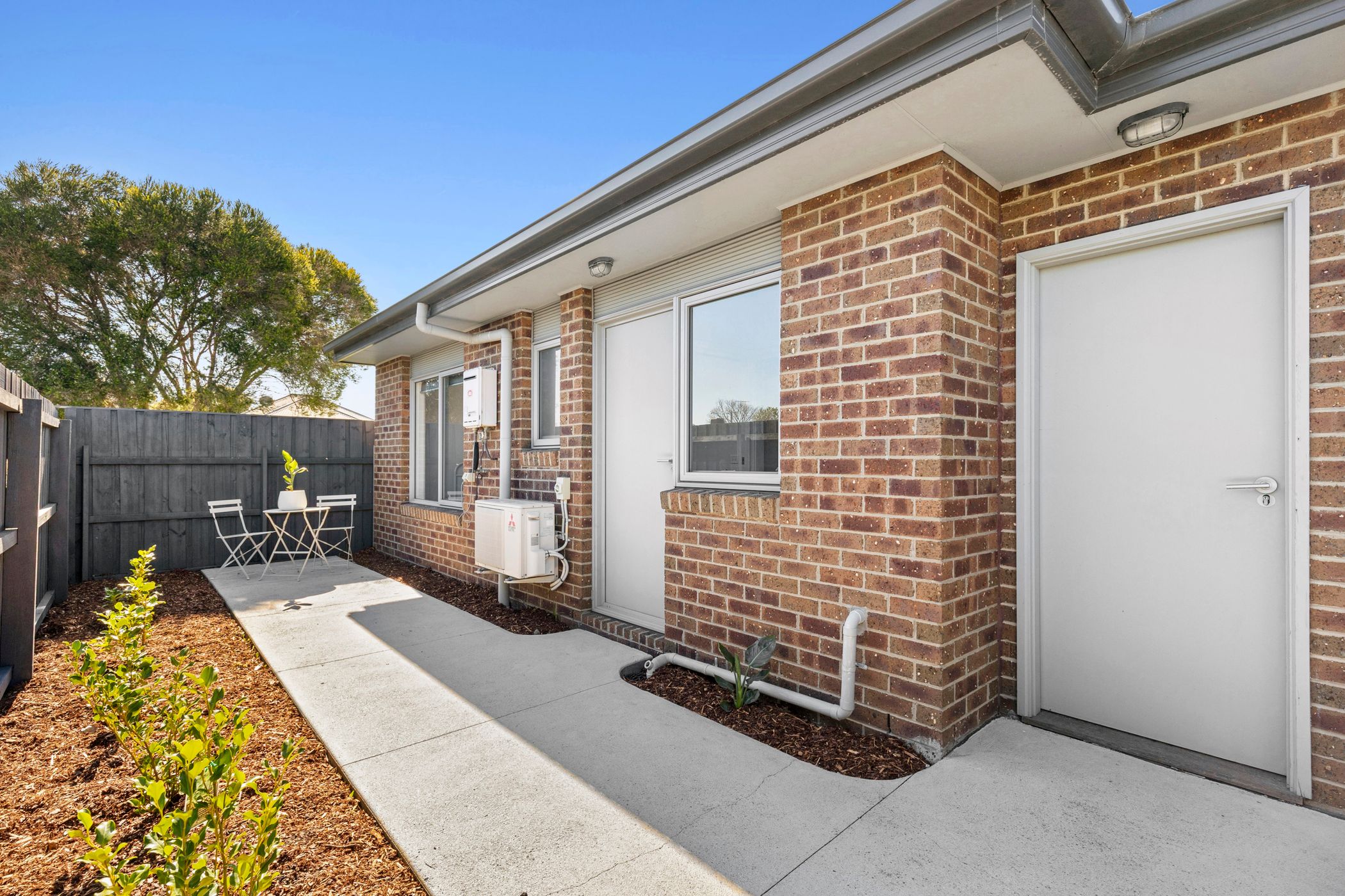 Both bedrooms are carpeted and fitted with built-in robes, while the central bathroom includes a separate shower and a full-sized bath, perfect for unwinding. A separate toilet and laundry with external access to the courtyard complete the floorplan A reverse cycle heating/cooling unit ensures comfort throughout the seasons.