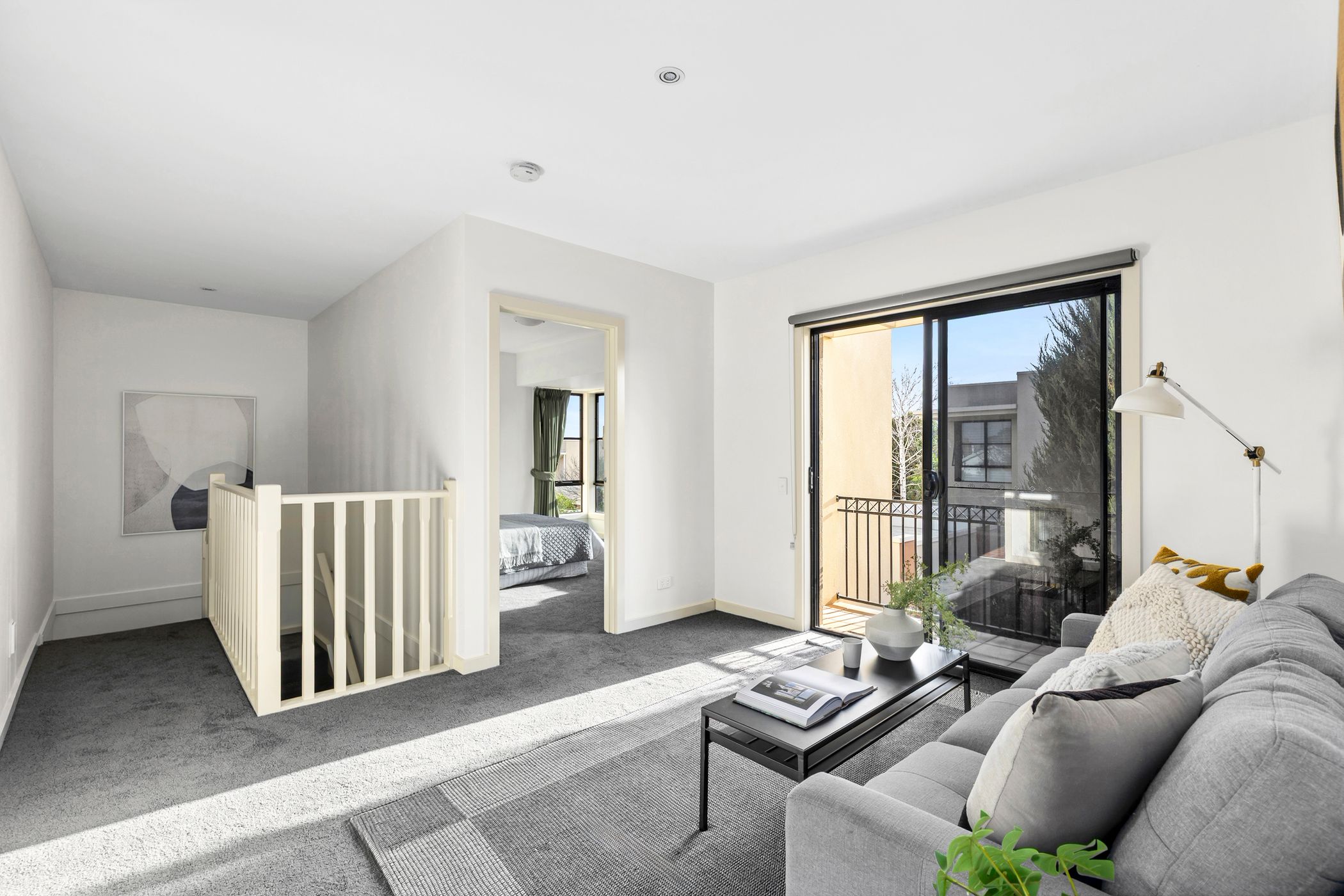 The intelligently designed floorplan includes three spacious bedrooms and two bathrooms, with a full downstairs bathroom and guest bedroom with built-in robes, an increasingly rare and highly desirable inclusion in townhome living. Upstairs, a second living zone opens to a west-facing balcony, capturing the lovely evening light and providing an additional space to unwind. The primary suite is generously proportioned, featuring air conditioning and a substantial walk-in robe, while the well-appointed main bathroom is cleverly configured as a two-way design, servicing both upstairs bedrooms with ease.