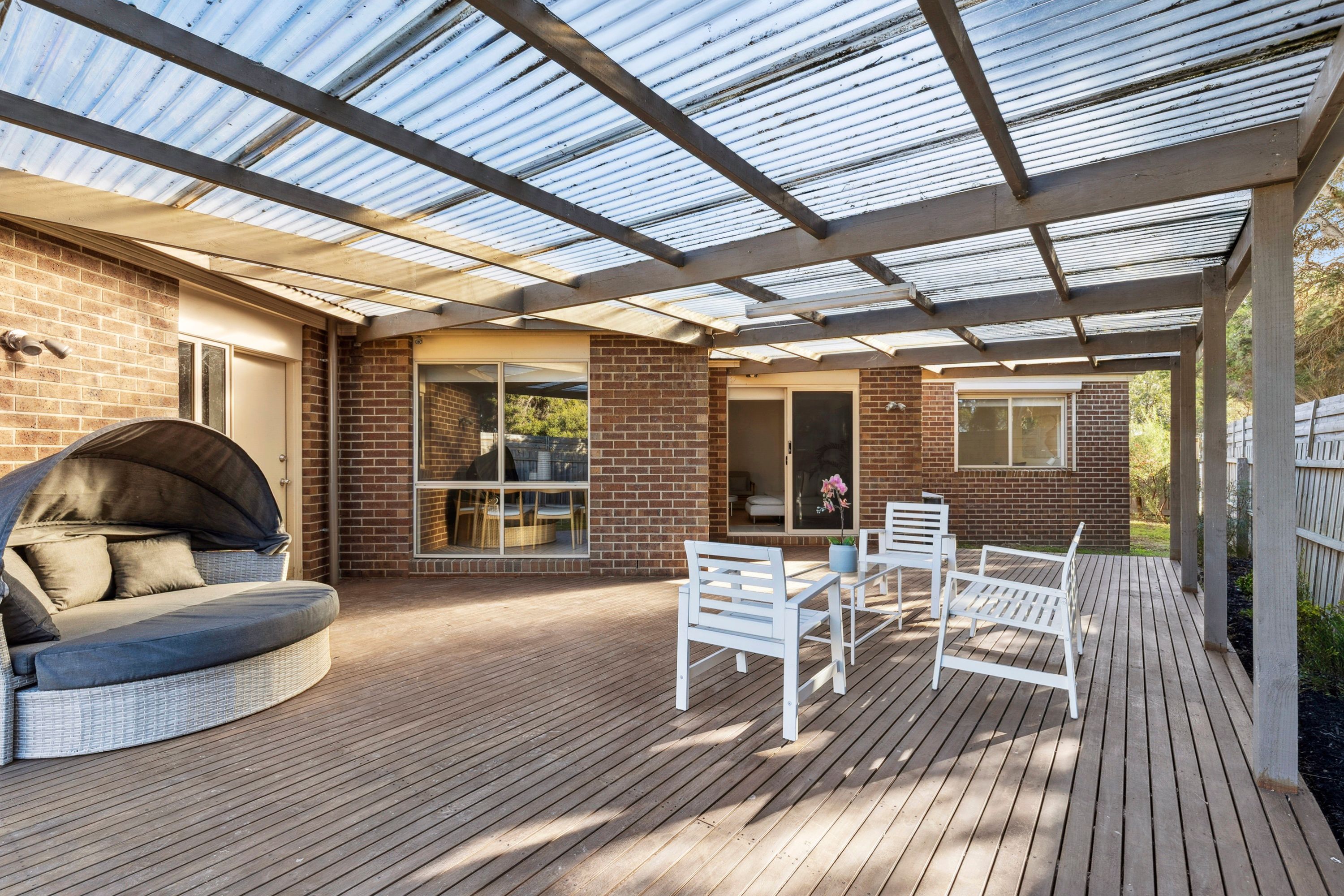 Indoor-outdoor living is a dream, with sliding glass doors opening onto a substantial undercover deck that sits amongst a grassy backyard, providing a peaceful space in which to enjoy the all-day sunshine or for the kids to play in a secure and private setting.