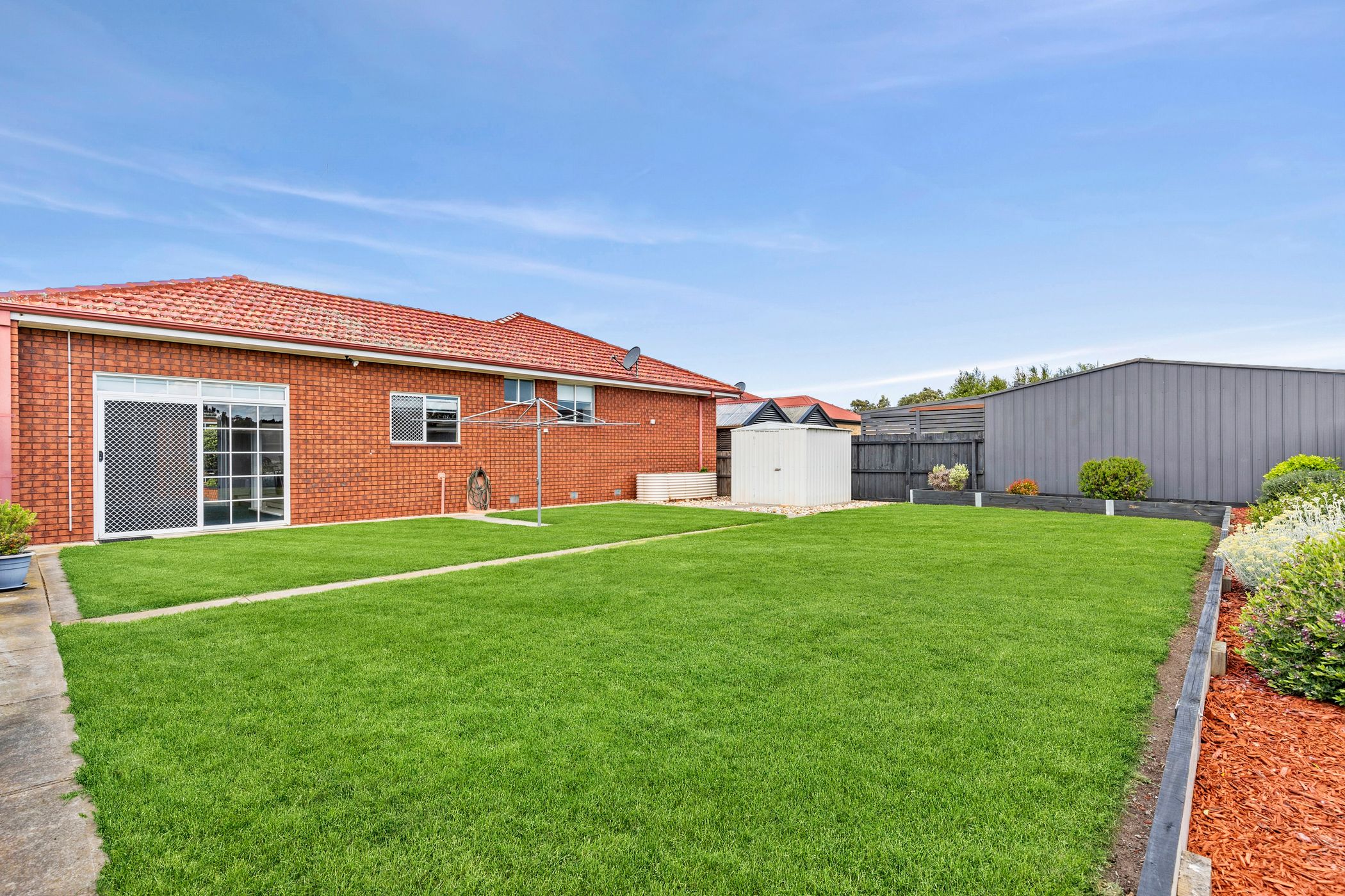 Outdoors, the backyard provides ample room for children, pets and gardening enthusiasts, with lush lawns, a garden shed and a raised veggie box ready for home-grown produce. A remote double garage ensures secure off-street parking and has a remote roller door to the courtyard.