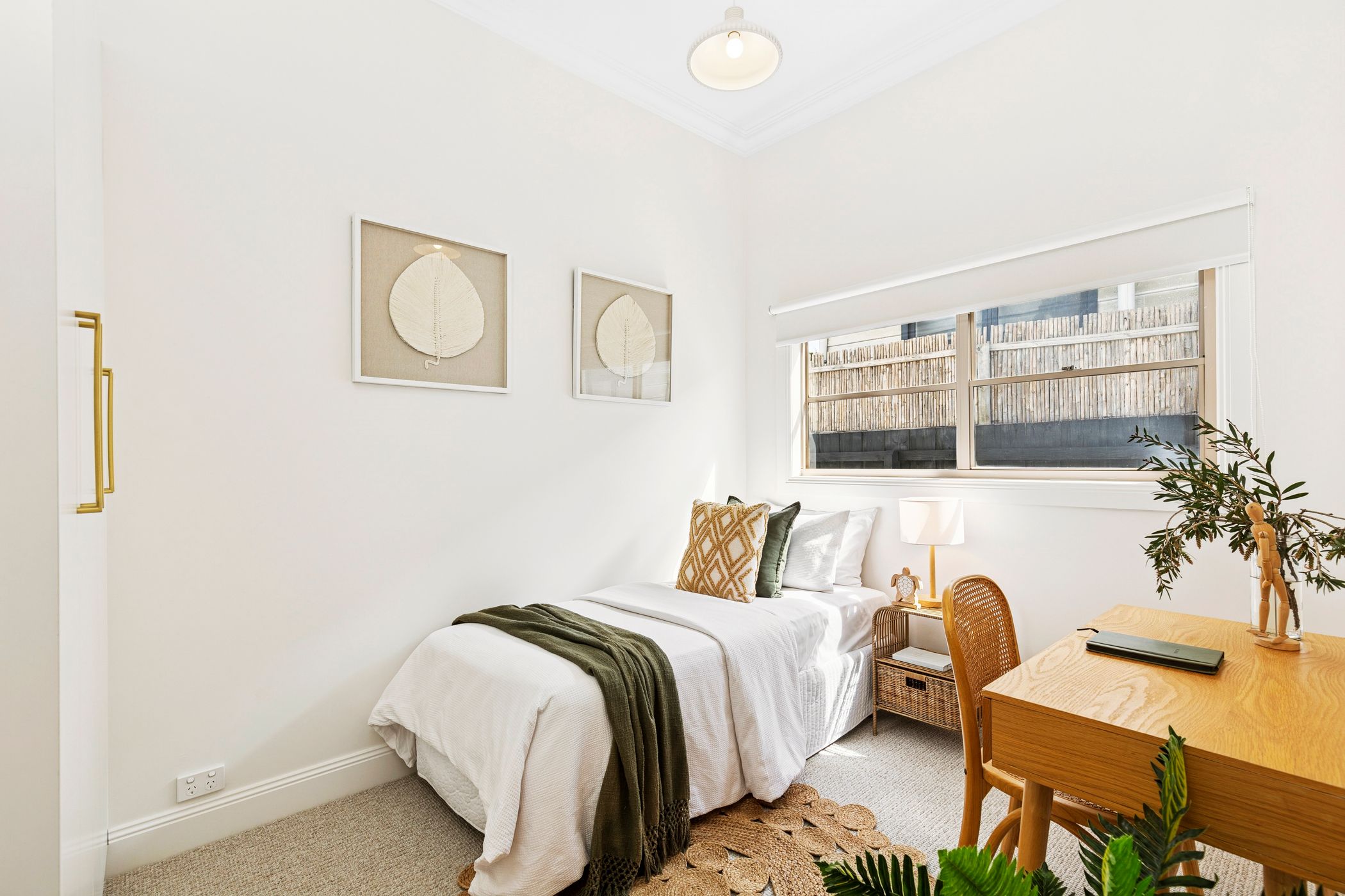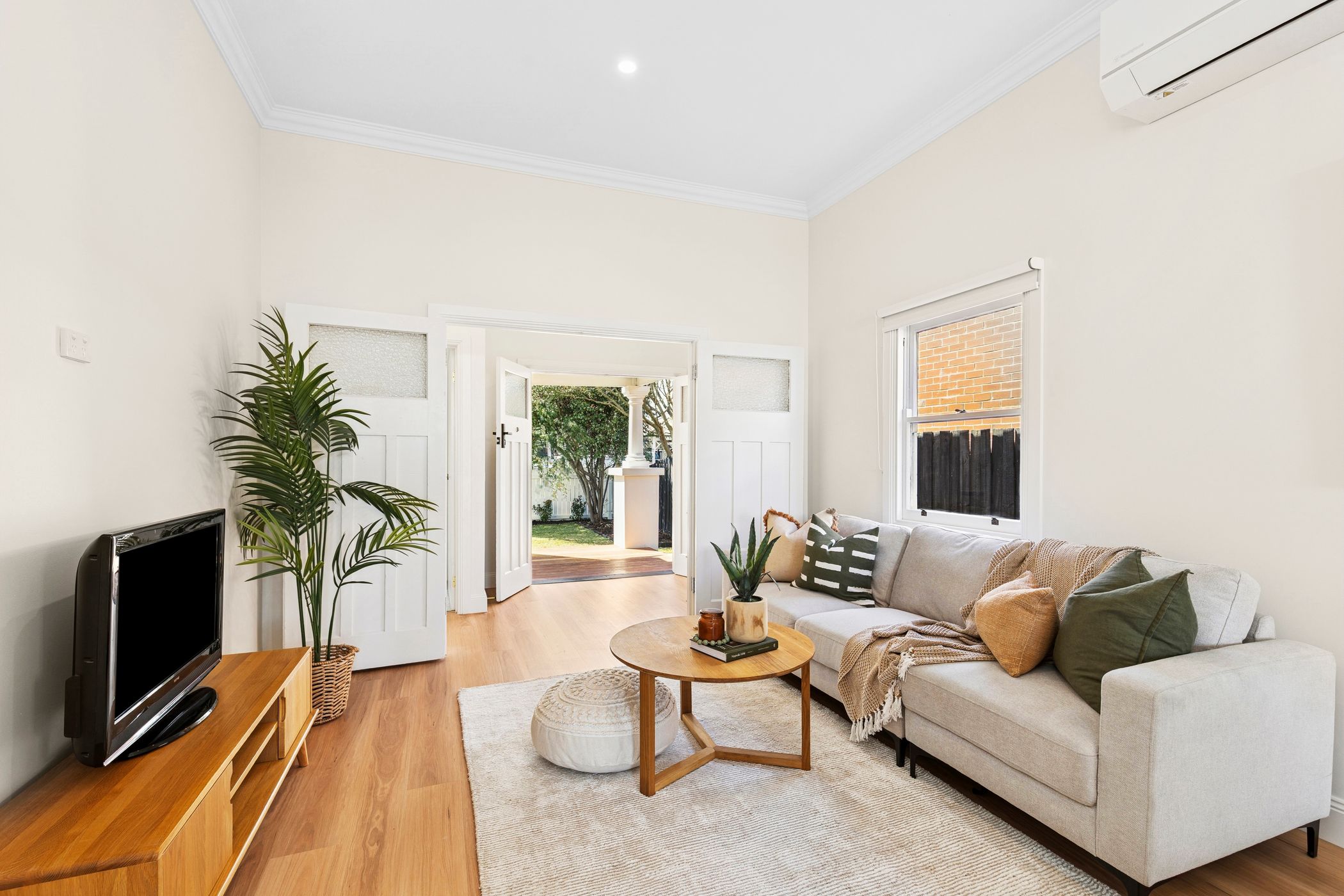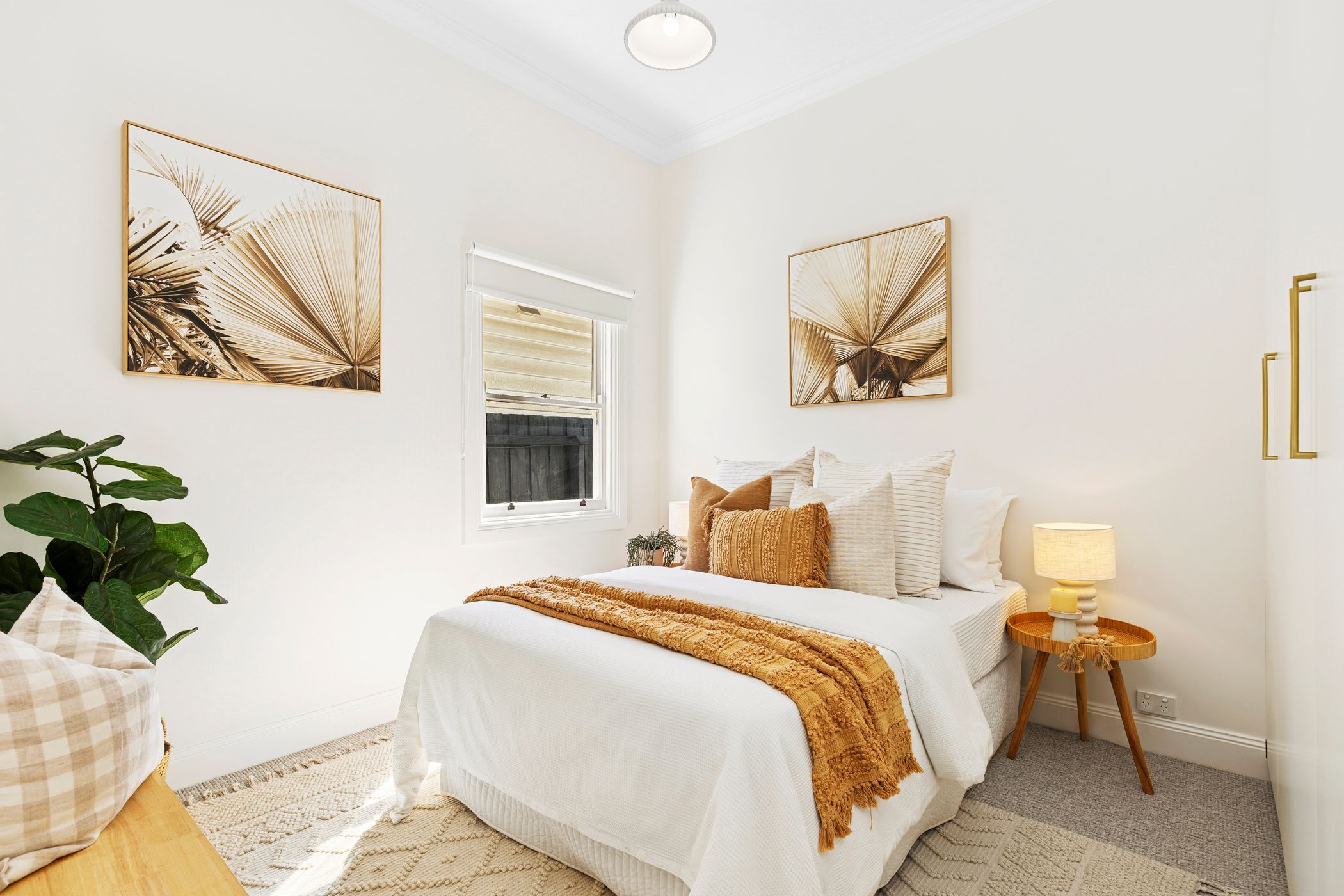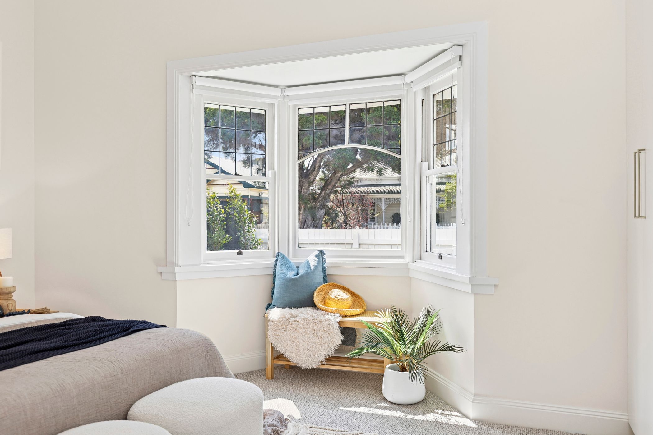 From the moment you step inside, soaring ceilings, blonde-hued timber floors and soft linen curtains create a serene, refined atmosphere. Natural light streams through original sash windows, illuminating the open-plan living, dining and kitchen space designed for connection and ease. Dual aspects invite cross-flow breezes and effortless transition to the outdoors, whether it's morning coffee in the sun-drenched front garden, alfresco dining on the private rear deck, or evenings by the firepit after the sun fades.