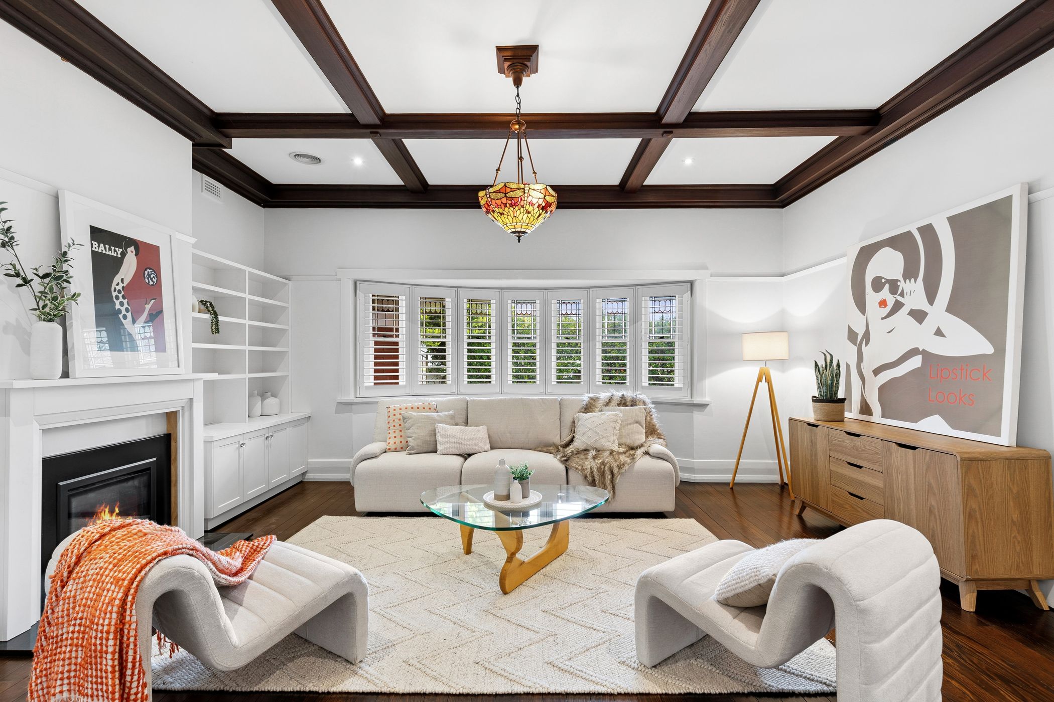 Privatised from the street behind a low rendered fence, this 1929 Arts & Crafts home is a rare heritage treasure. Celebrating the principles of clarity of form, asymmetry, traditional craftsmanship and local materials, it offers a living experience rooted in authenticity and timeless design. Shingled gables, terracotta roof tiles with finials, brick chimneys and leadlight bay windows exude character, inviting admiration at every turn.