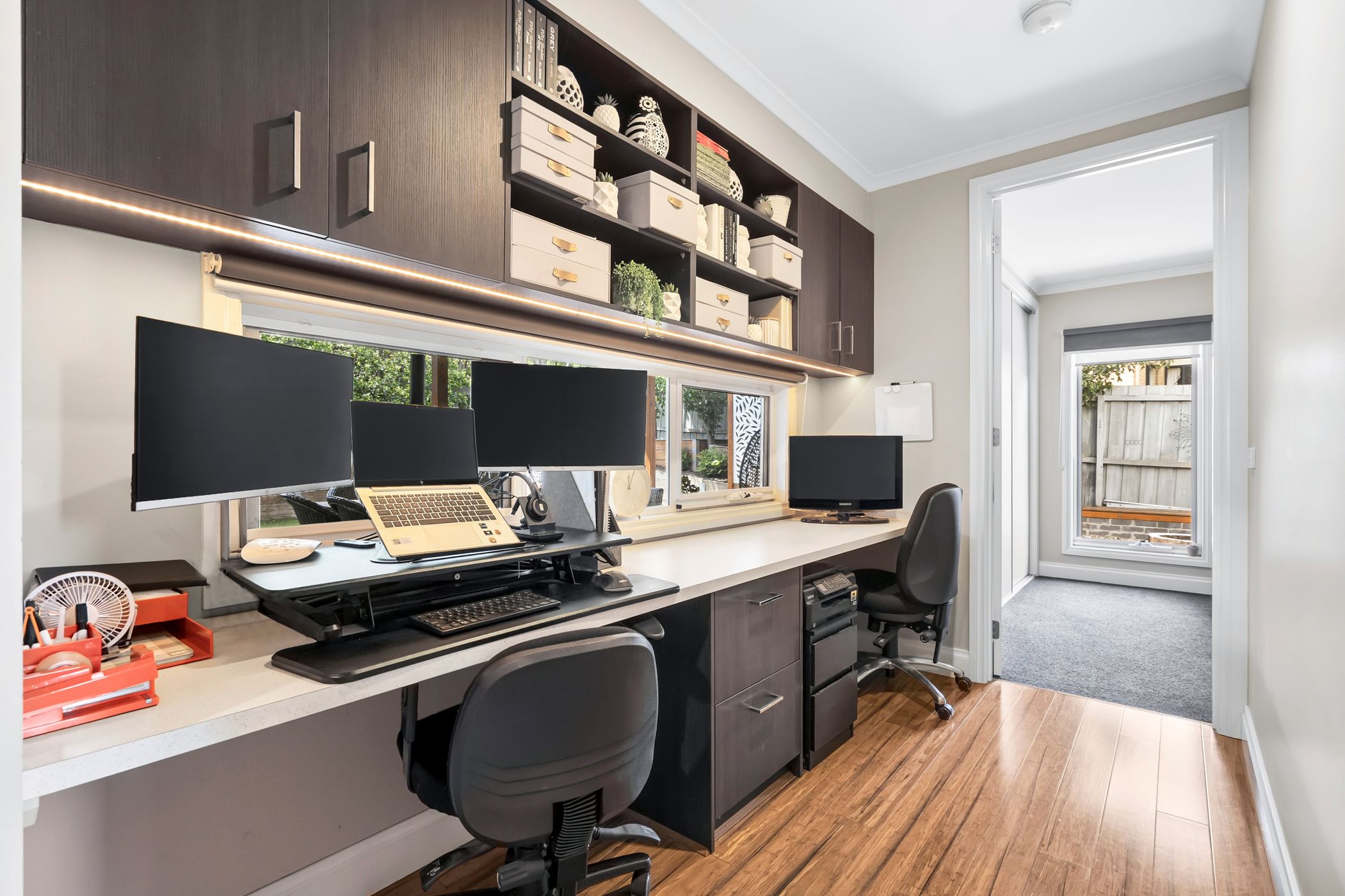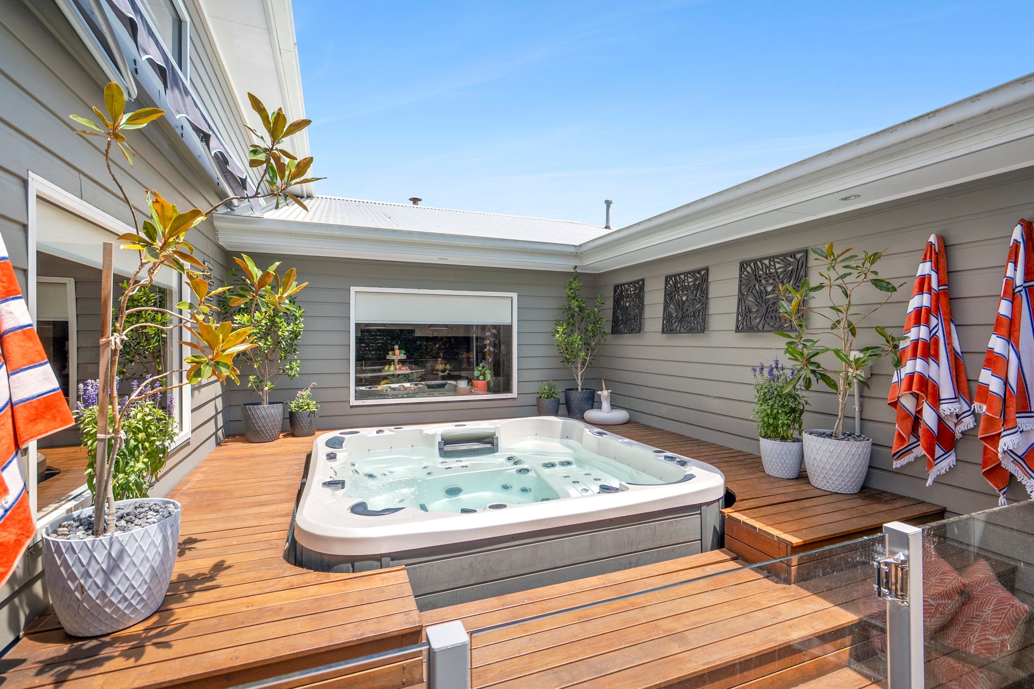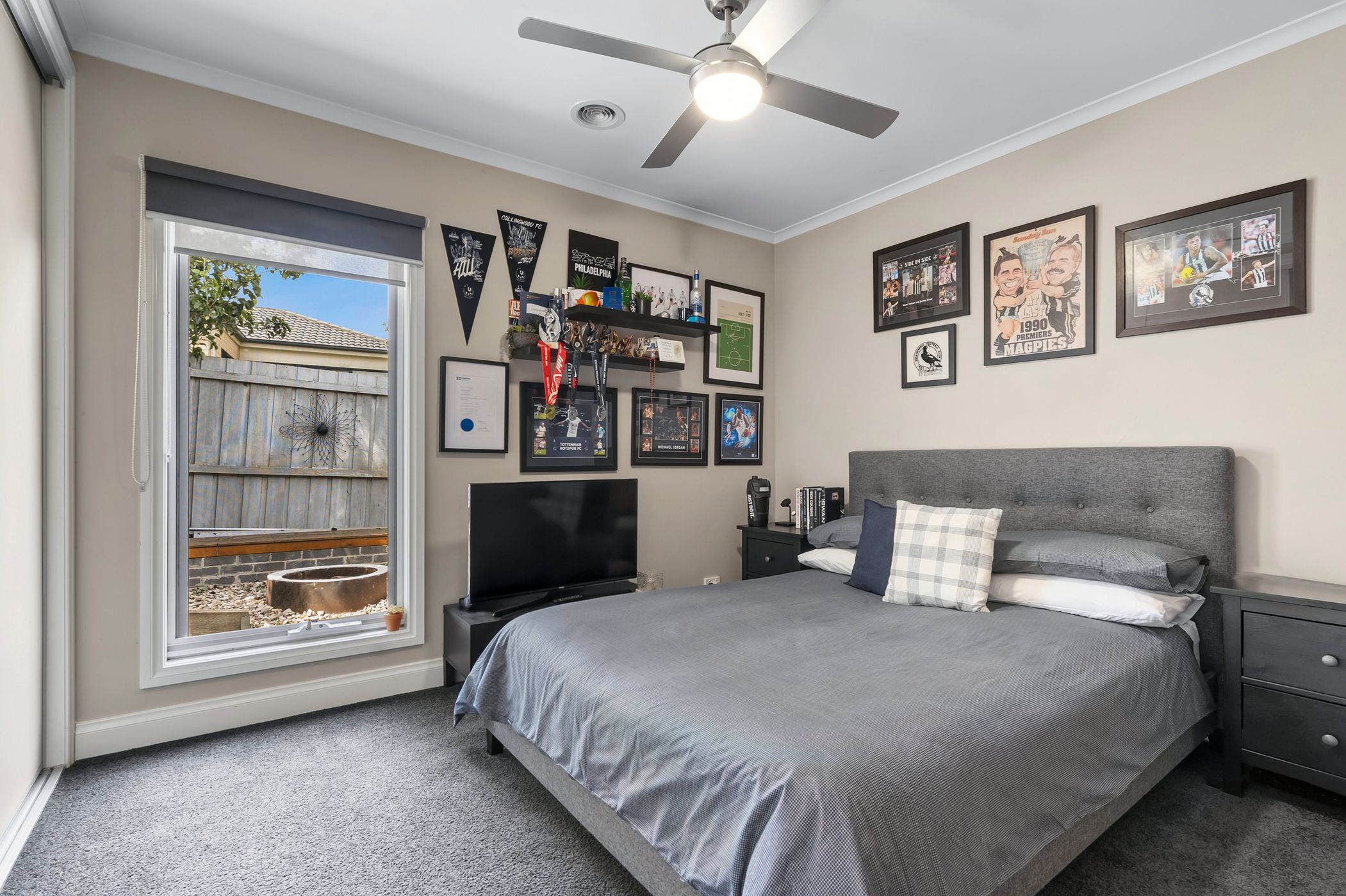 French doors open to an impressive covered alfresco deck, complete with a built-in BBQ and dedicated fire pit zone - perfect for entertaining in every season. Low-maintenance gardens with synthetic turf, established trees and a luxurious six-person spa further enhance the outdoor appeal. An oversized remote double garage provides excellent storage and convenient internal access.