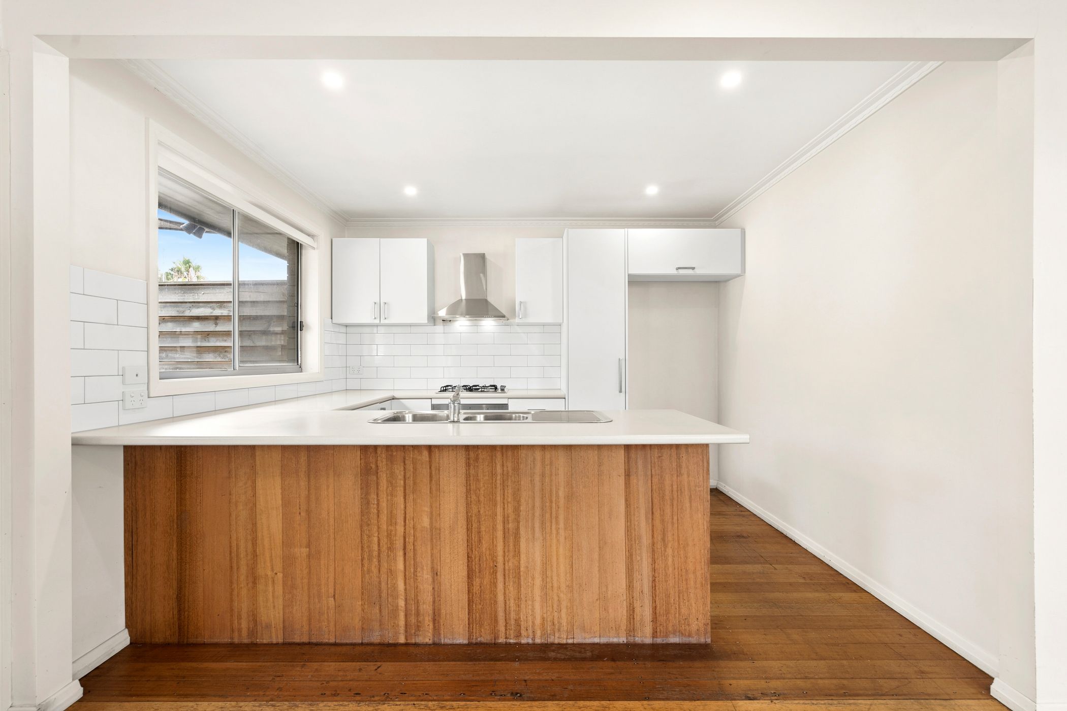 At the rear, an open plan living, dining and kitchen zone creates a welcoming hub of the home. The kitchen is well-appointed with gas cooking and a breakfast bar, seamlessly connecting to a large, sun-drenched deck-perfect for entertaining-overlooking a secure rear yard with garden shed.