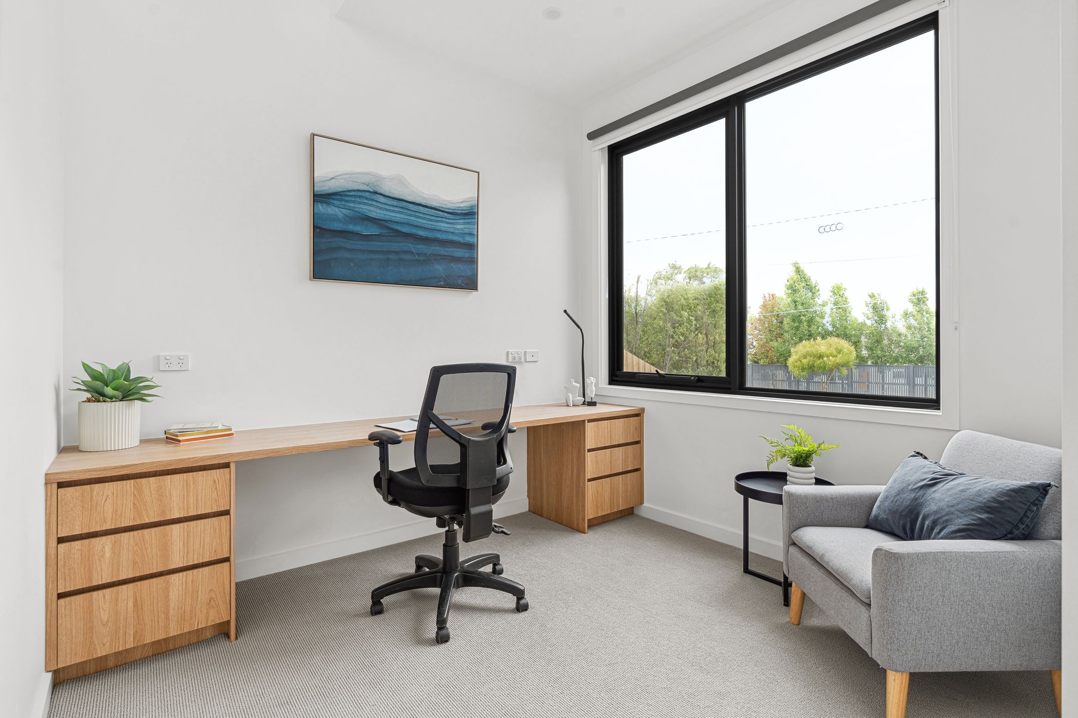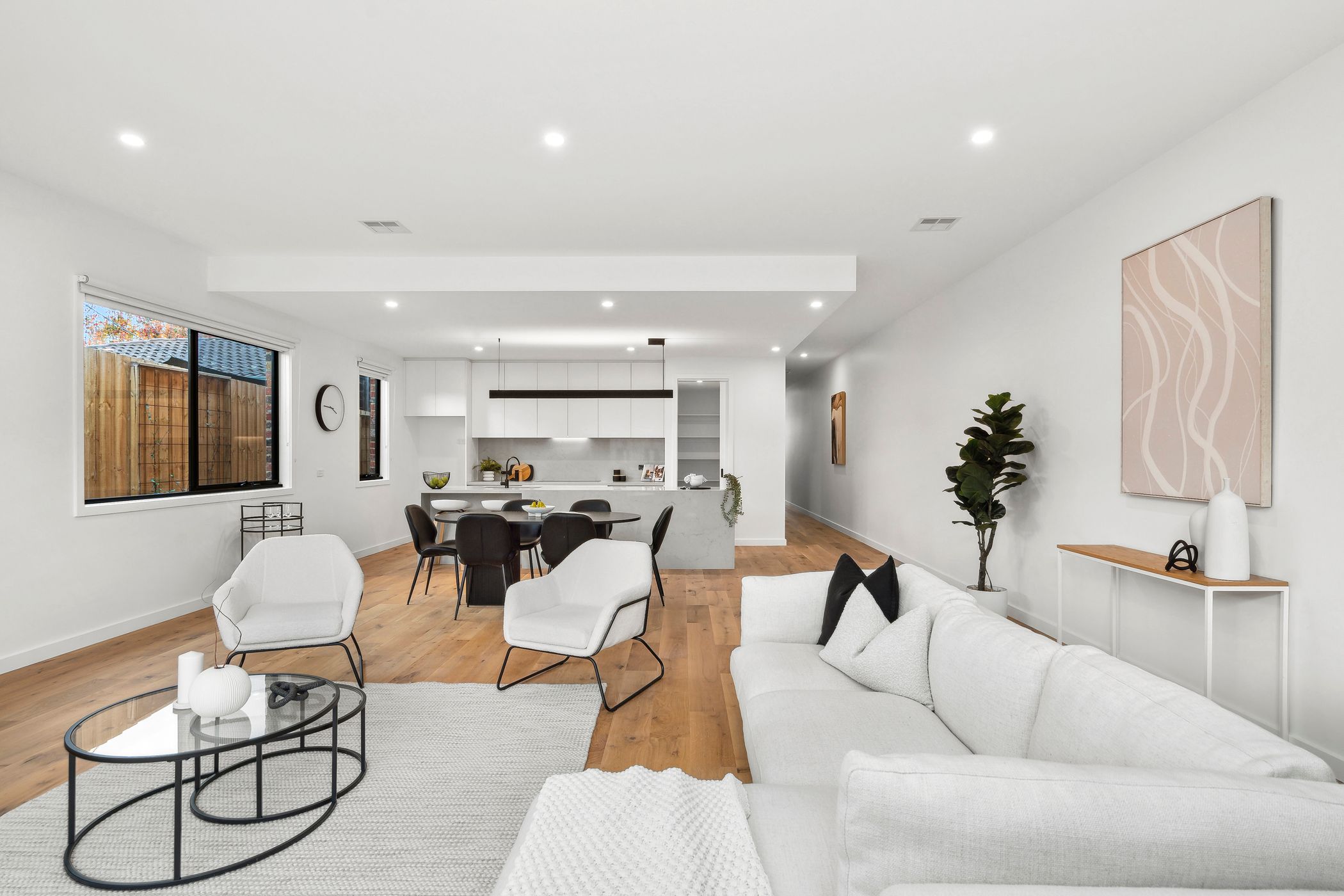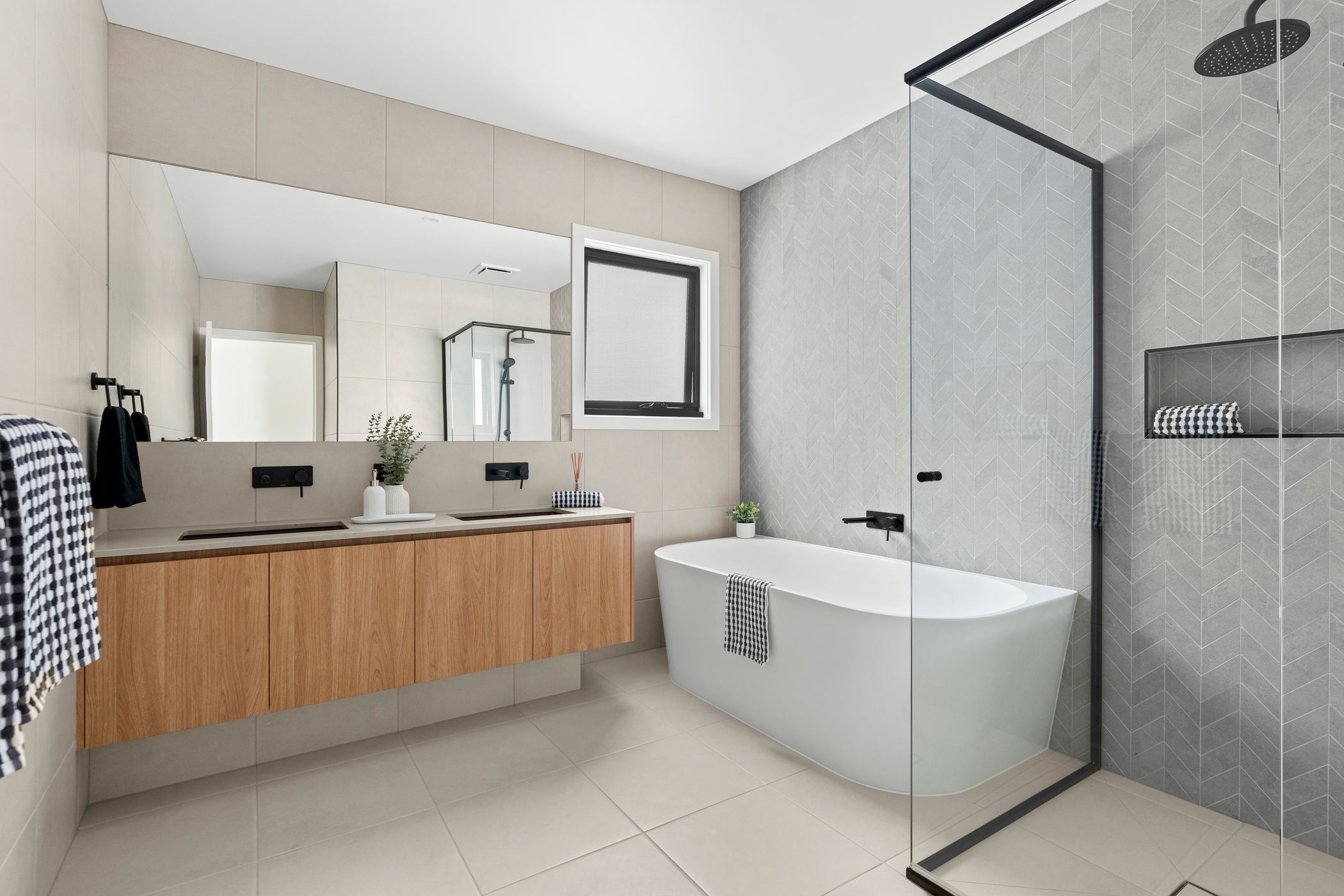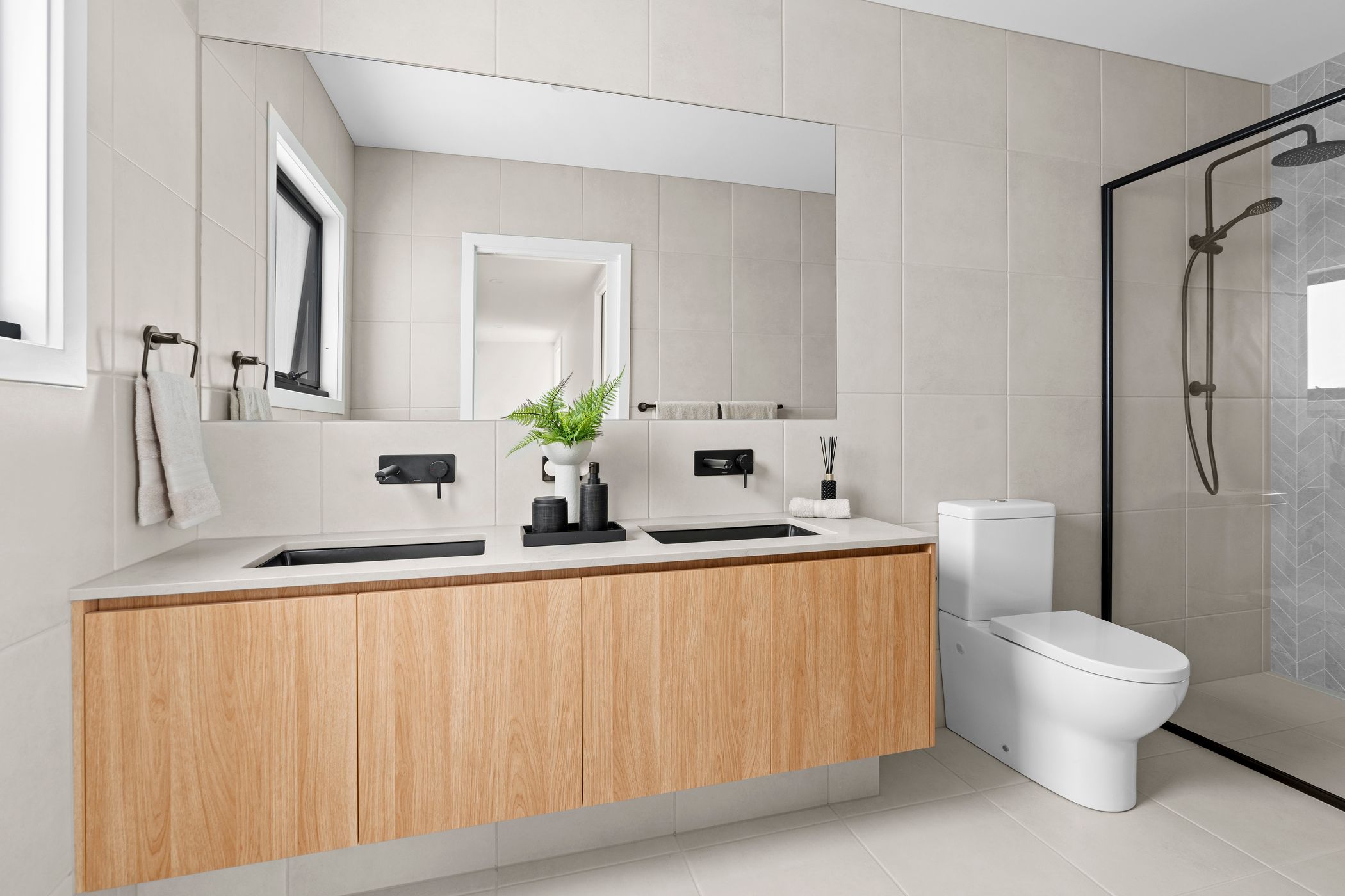 Both main bedrooms create private retreats, complete with a fully-fitted walk-in robe and luxurious ensuite. The stylish laundry and powder room complete the lower level, while the upstairs lounge captures an elevated outlook over the treetops. Two additional bedrooms with mirrored built-in robes are serviced by the powder room and main bathroom, which will delight with a semi-attached bathtub. You'll love that all three bathrooms exude on-trend luxury with floor-to-ceiling tiling and dual vanities with stone benchtops.
