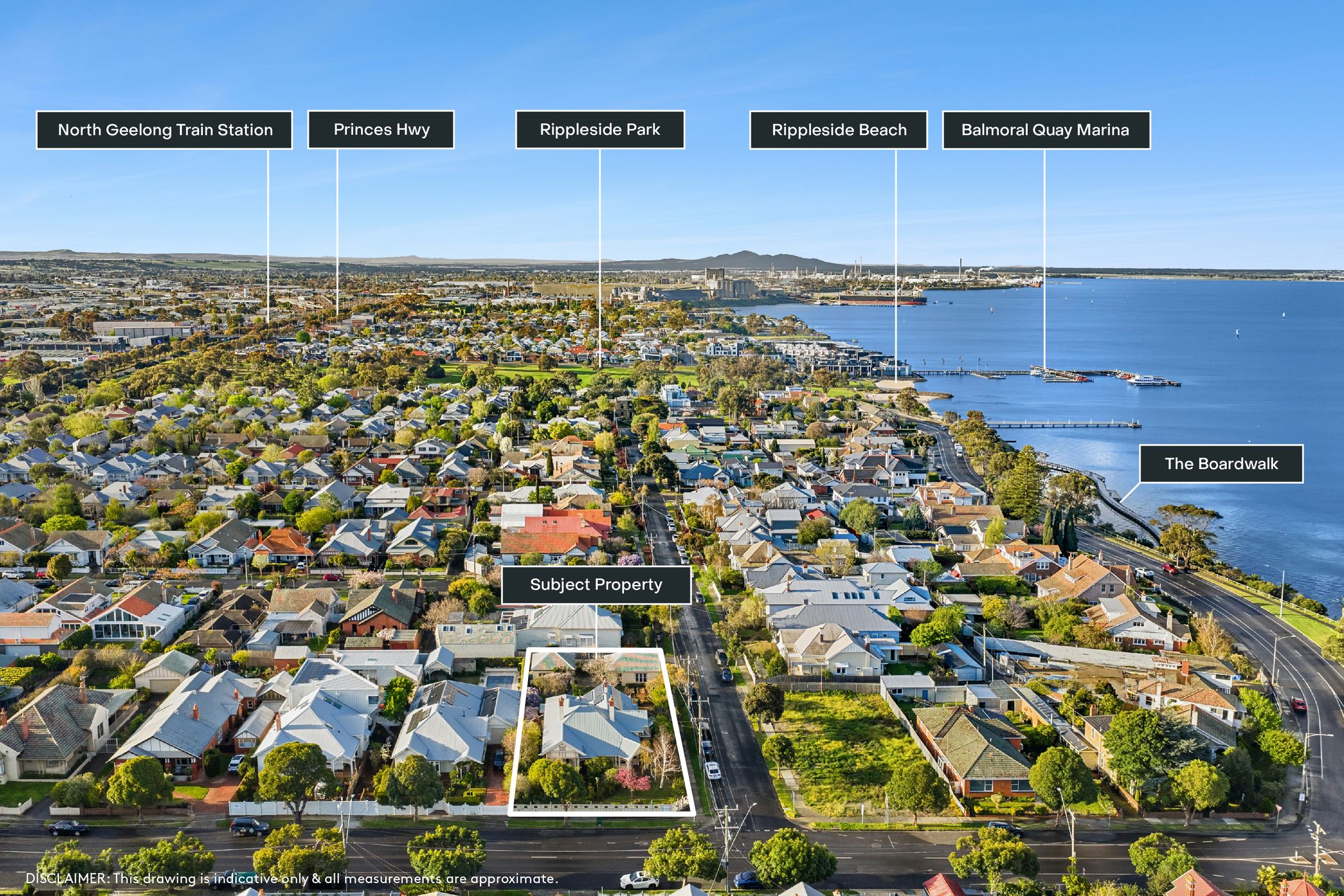 Just steps from bayside beaches - including Western Beach, Rippleside Beach and St Helens Beach - as well as Lunan Avenue Park, this prized location is only moments from the Geelong CBD and vibrant waterfront precinct. Enjoy daily walks along the promenade to Cunningham Pier, Eastern Beach and the Botanic Gardens - where native birdlife and marine life create an ever-changing natural backdrop. Watch fireworks and major events from your front verandah, or cast a line at the water's edge.