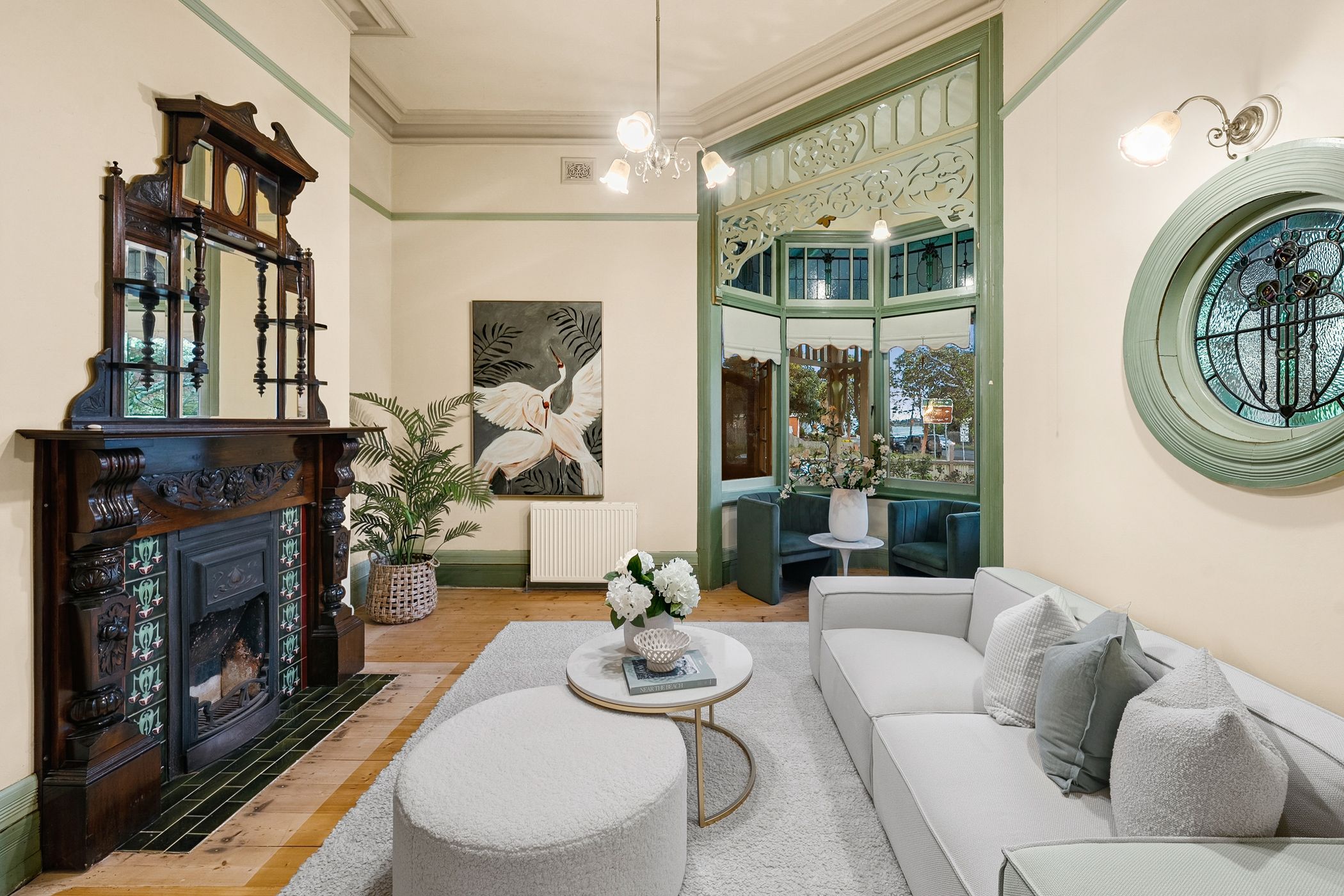 Positioned on a substantial 1205m² corner allotment just 150 metres from Corio Bay, this home sits among Geelong's most exclusive properties and prominent landmarks. Distinguished by its Edwardian architecture and set on solid brick pier foundations, it showcases soaring 3.4-metre ceilings, intricate fretwork, leadlight windows and ornate fireplaces - a timeless blend of elegance and enduring craftsmanship.