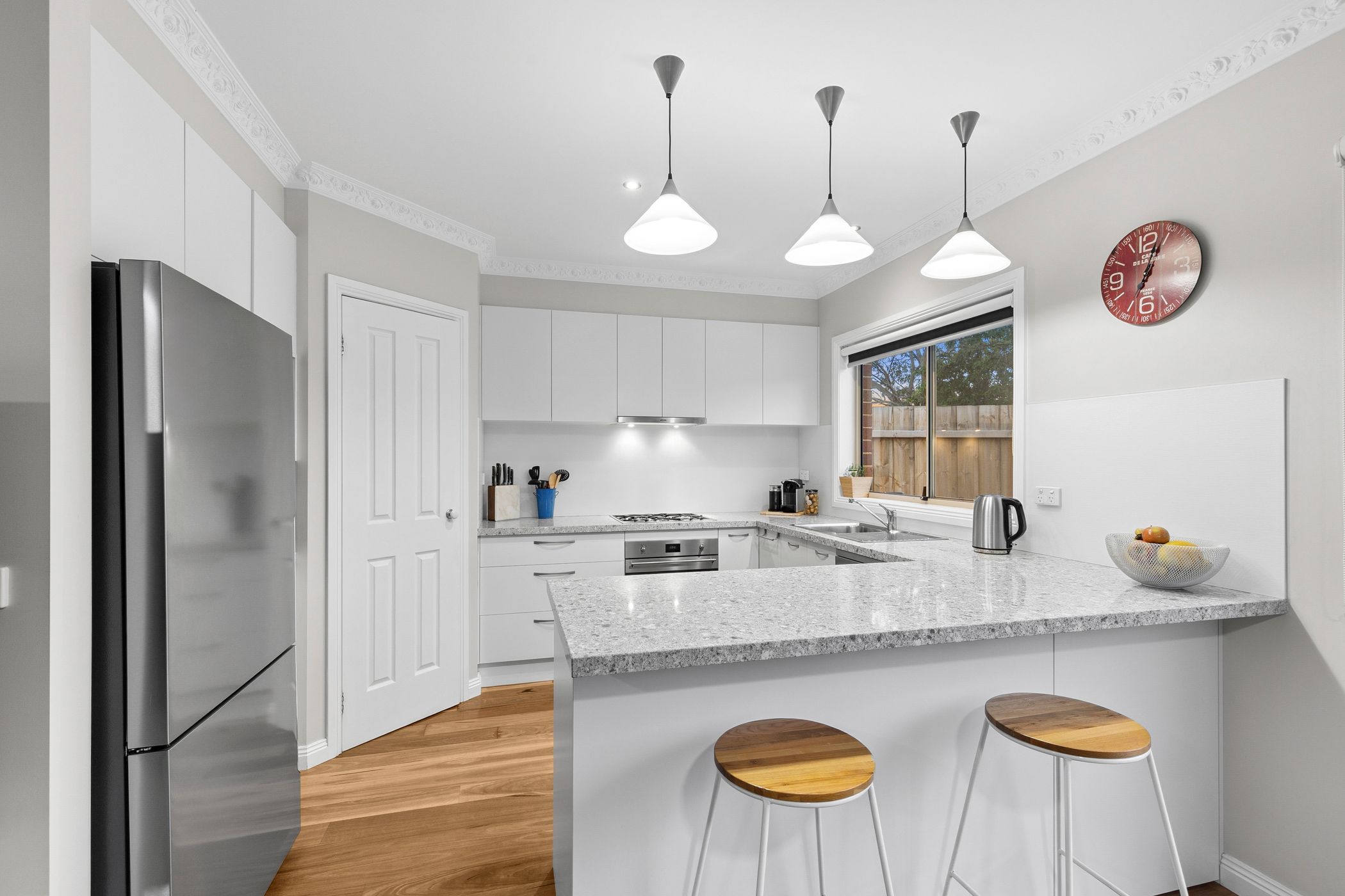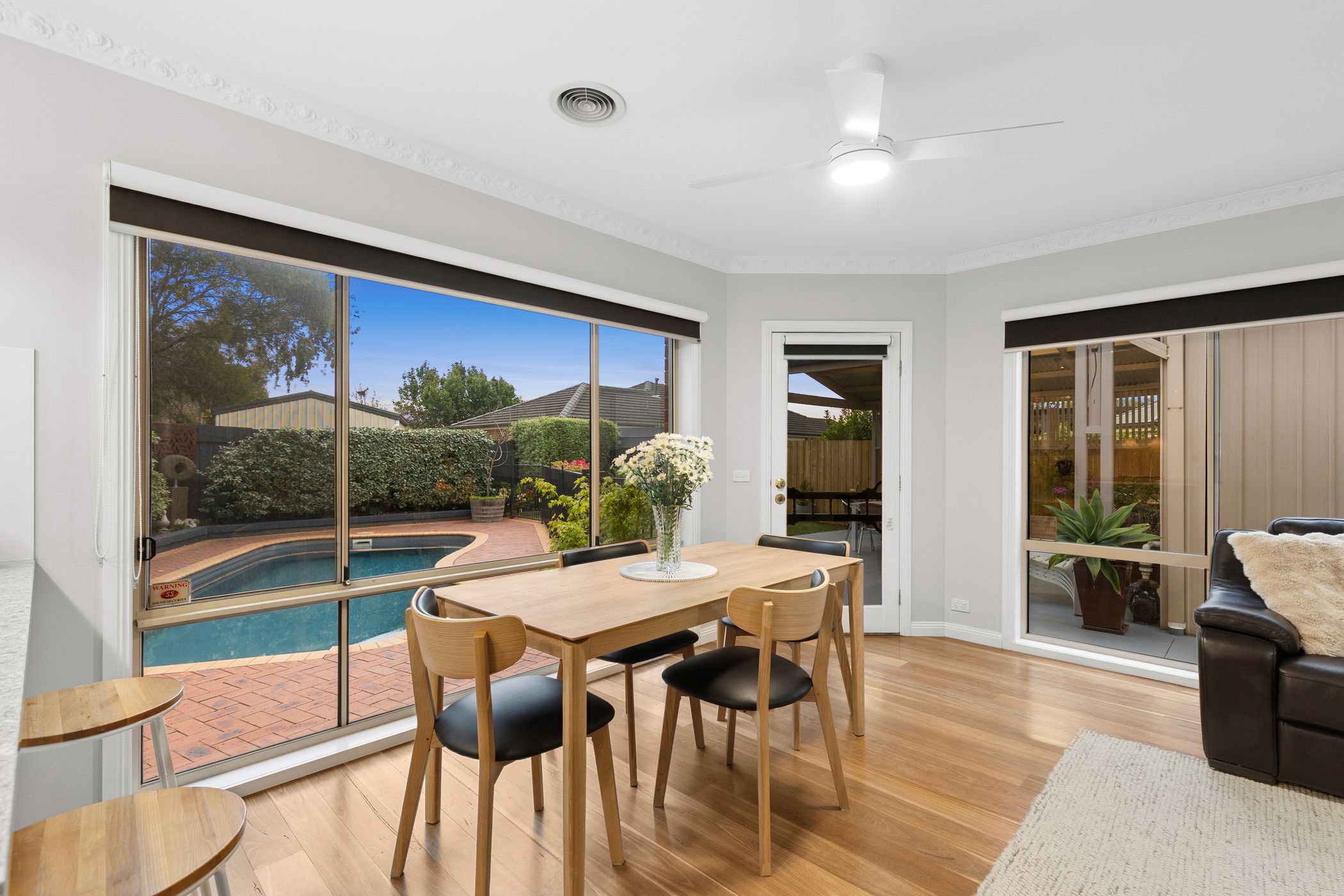 Warm and inviting, the timeless interiors showcase rich timber floorboards, elegant decorative cornices and intricate ceiling roses, adding character throughout. The north-facing open-plan living area is bathed in natural light, framing lovely views of the sparkling in-ground swimming pool - an inviting backdrop for year-round family enjoyment. For quieter moments, a separate lounge at the front of the home provides a peaceful retreat to relax or read. The well-appointed kitchen is sure to impress, featuring stone benchtops, premium SMEG stainless steel appliances (oven, 4-burner gas cooktop, and dishwasher) and a step-in pantry for effortless storage.