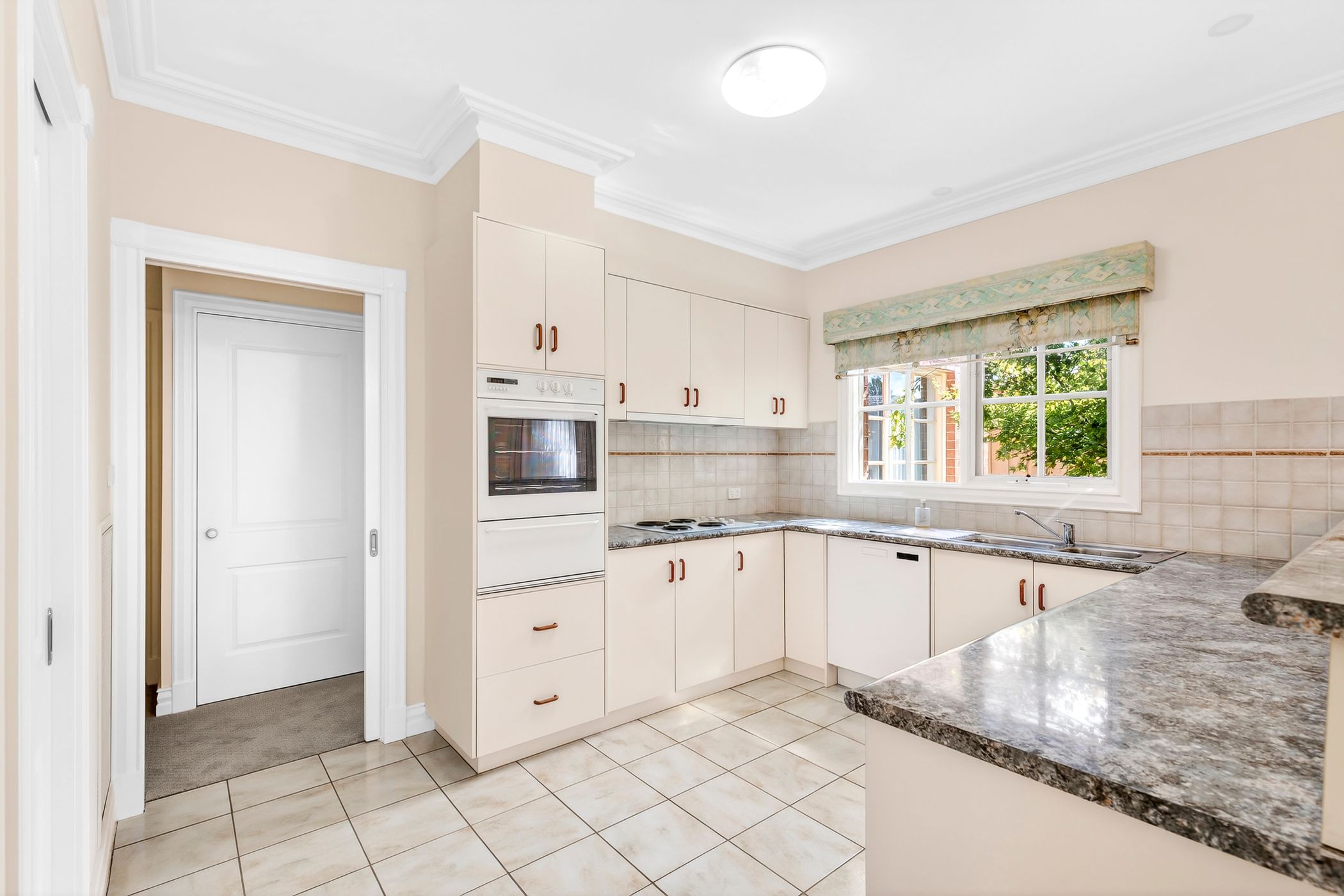 Step inside to a welcoming entry leading through to a spacious lounge, while the fully equipped kitchen impresses with state-of-the-art appliances including a brand new Asko dishwasher, St George oven and stove, ample cabinetry, and a walk-in pantry. The adjoining dining area enjoys lovely outlooks across the spectacular established gardens.