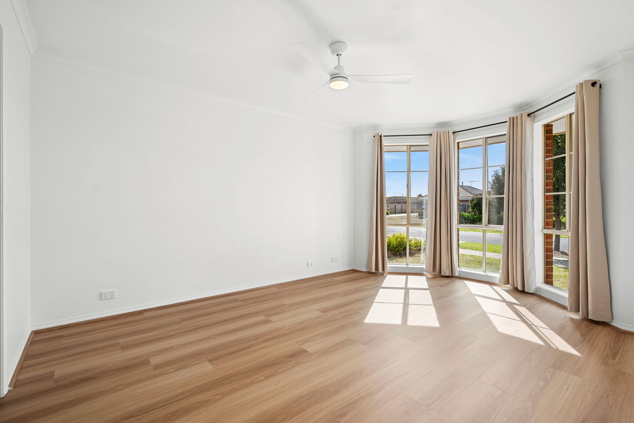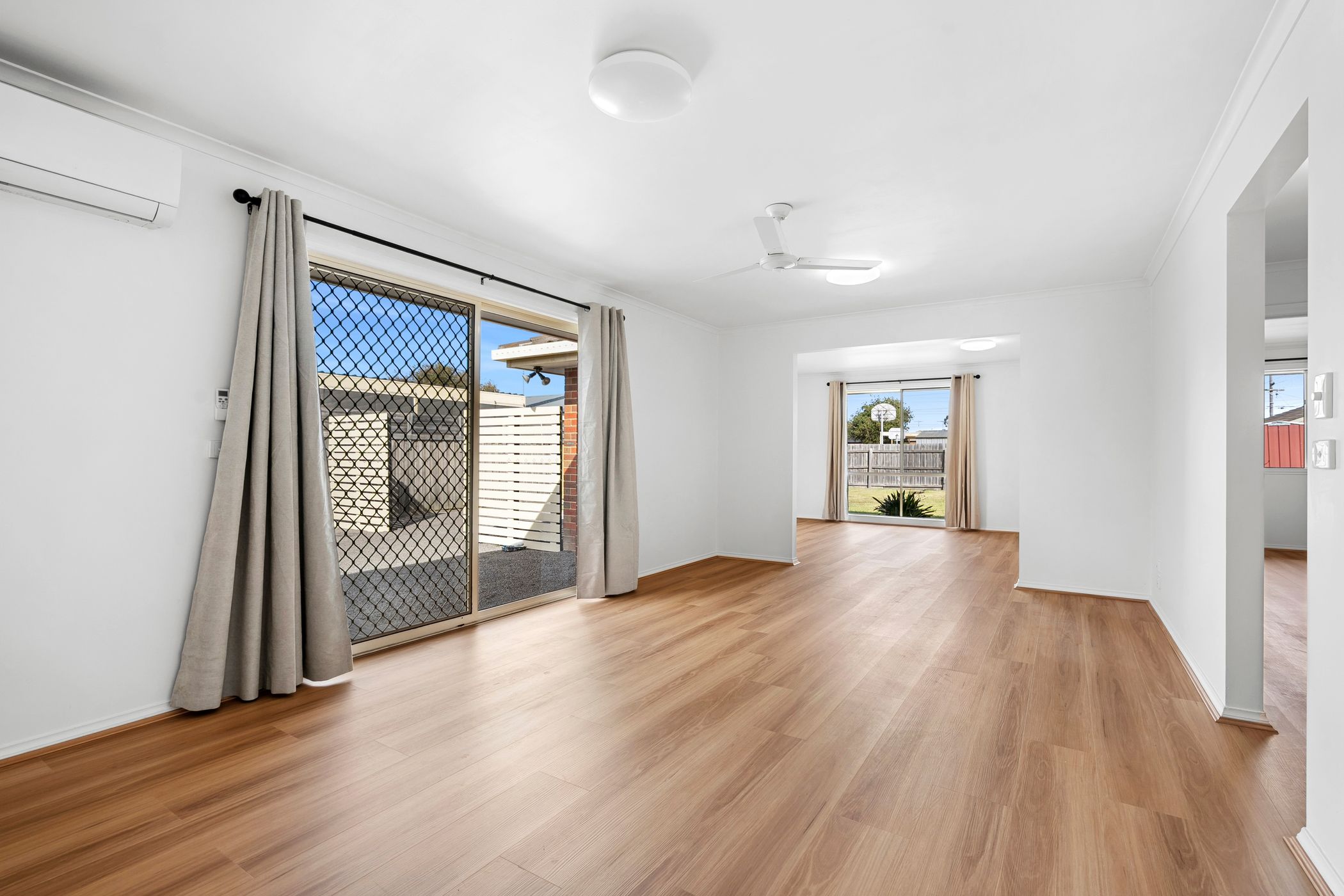 Step inside to discover a light-filled interior, freshly painted and enhanced by stylish hybrid flooring throughout. A formal lounge at the entrance offers a welcoming introduction, flowing through to an open plan living, dining and well-appointed kitchen, before extending to a third living zone-perfect for growing families seeking space and versatility.