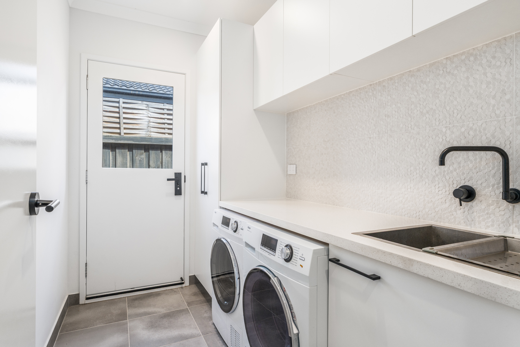 - Complete laundry fit-out with functional cabinetry and countertop.