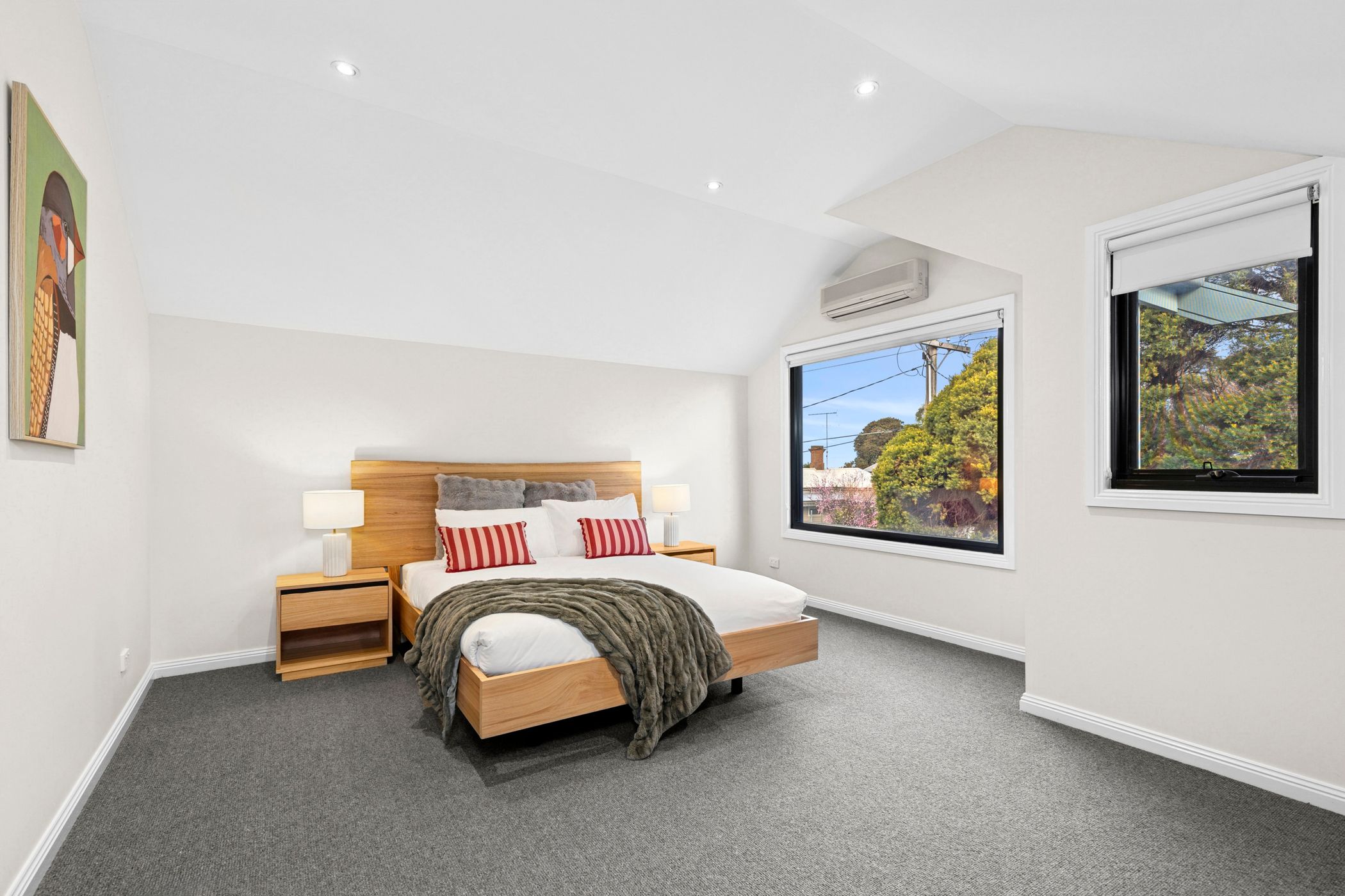 Accommodation is well zoned across both levels. Two bedrooms on the ground floor feature built in robes, soft woollen carpets and high ceilings and are serviced by a central bathroom. Upstairs, the main bedroom enjoys views over leafy Maud Street and includes a walk in robe, ensuite, woollen carpets and split system air conditioner for comfort. A fourth, oversized bedroom upstairs, also fitted with robes, woollen carpets and a split system, provides flexibility for work, study or guests. This would also be well suited as a second living space. A separate laundry and a single garage with internal access complete the layout. Double glazed feature on the main suite windows, lounge, dining room and second bedroom downstairs.