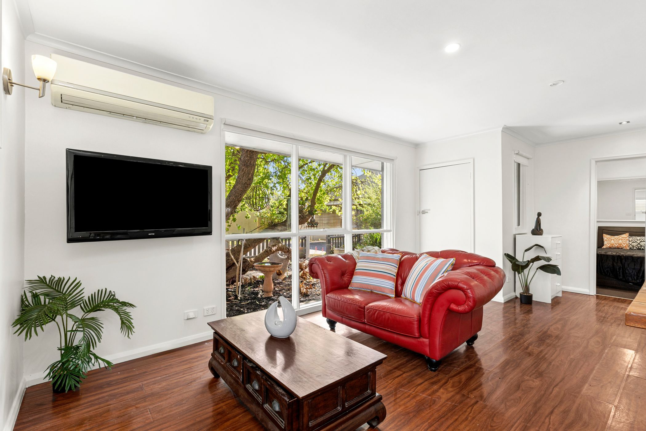 The main bedroom includes built-in robes and direct access to the central bathroom, while the second bedroom provides flexibility as a guest room or home office. A reverse-cycle heating and cooling unit ensures comfort throughout the seasons. Side lane access leads to a single carport, with easy entry through the enclosed alfresco area. Outside, the rear yard is a tranquil haven, framed by established trees and lush plantings - peaceful retreat to relax and unwind.
