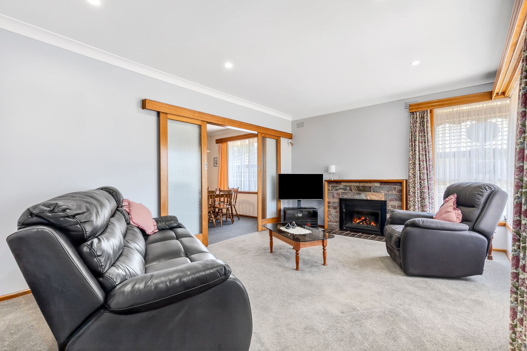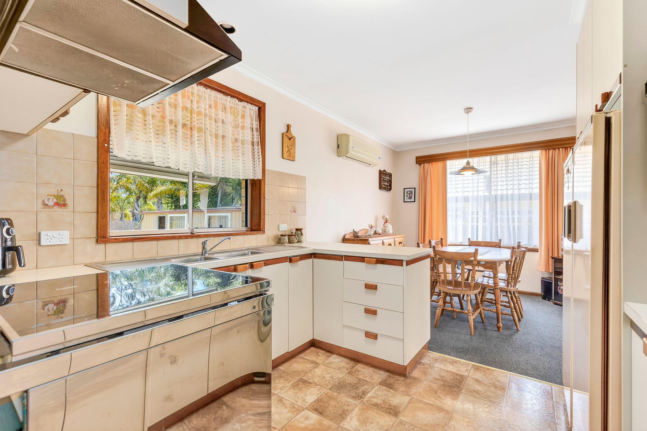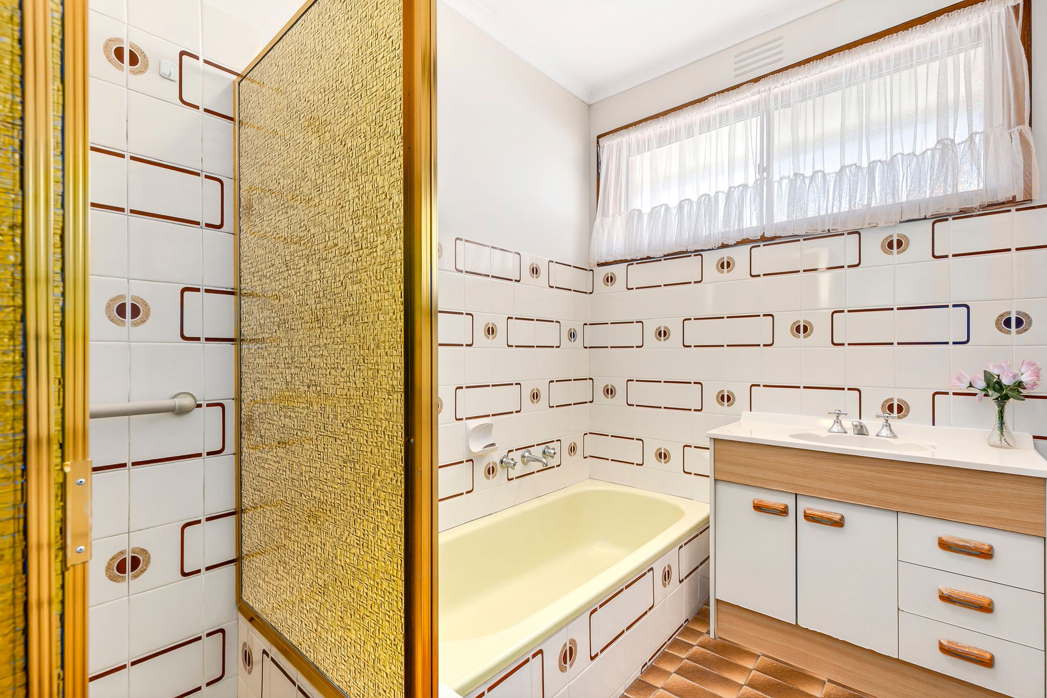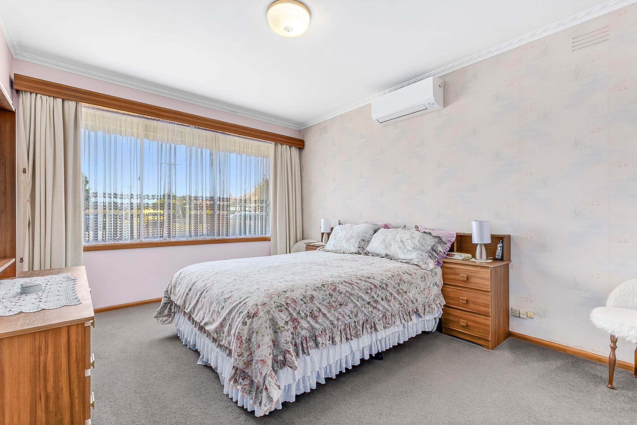Accommodation comprises three well-proportioned, carpeted bedrooms, all fitted with built-in robes. They are serviced by a central family bathroom featuring retro tiling, a bathtub and a separate toilet. A full laundry further enhances the home's practical layout.