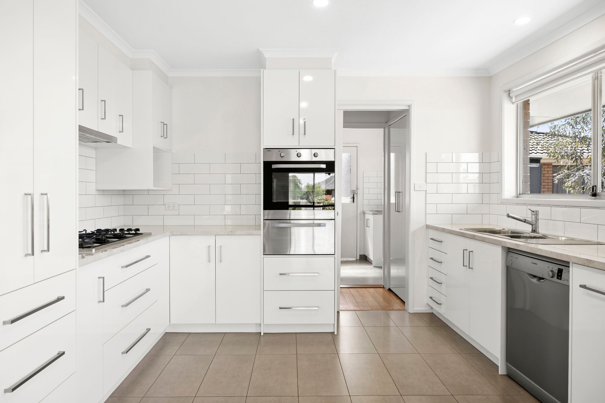 Recently painted and enhanced with plush new carpets, the interiors feel bright, fresh and instantly inviting. At the centre of the home, an open plan living, dining and kitchen zone provides a relaxed yet functional space for everyday living. The updated kitchen is both stylish and practical, appointed with stainless steel appliances, a built-in pantry and a pleasant outlook across the side garden.