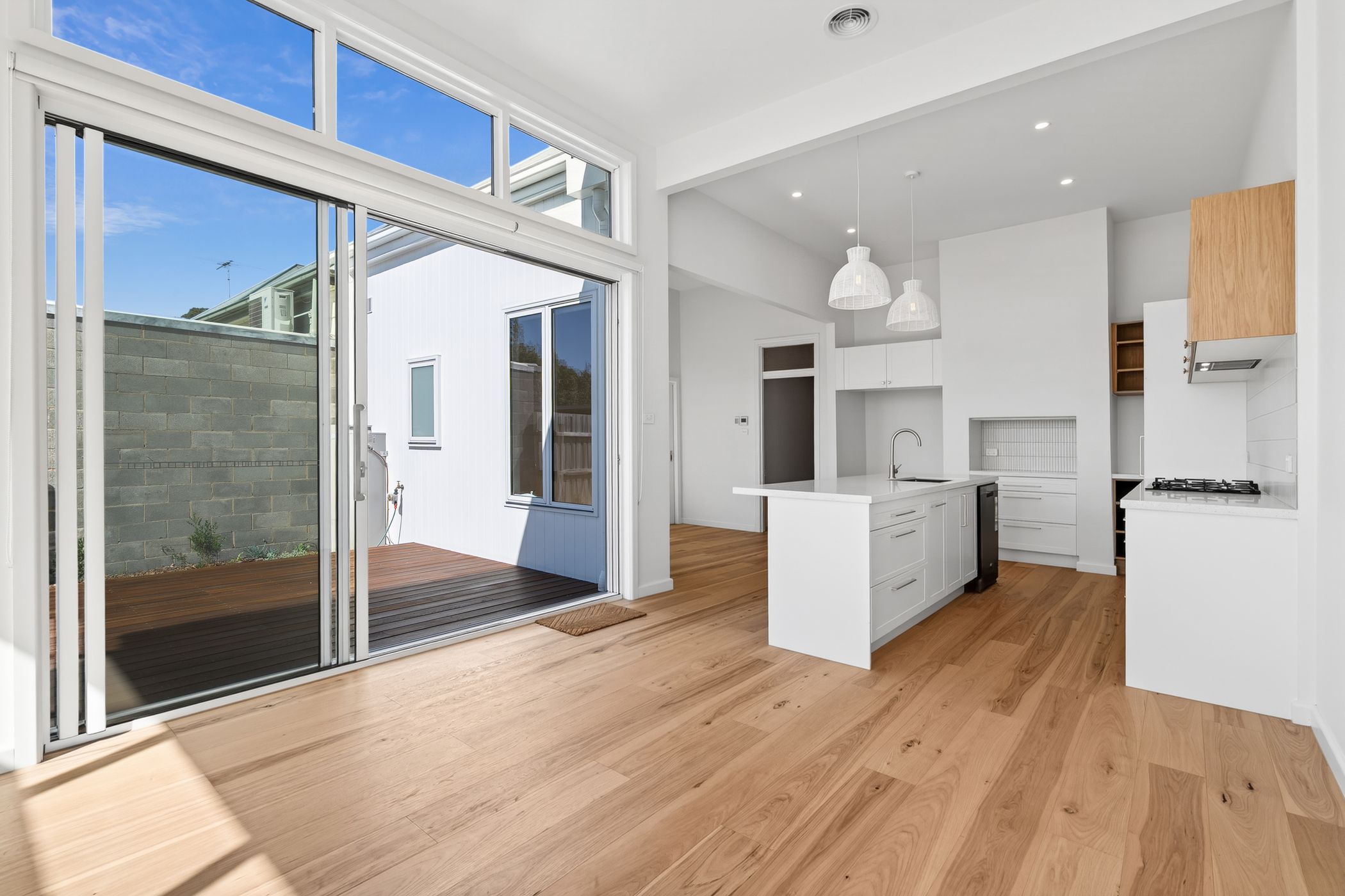 A welcoming entry hall leads to a light-filled open plan living, dining and kitchen area, perfectly oriented to capture a north-westerly aspect. This sun-drenched space forms the heart of the home and flows seamlessly through to the outdoor deck and beautifully landscaped yard, creating the perfect setting for both everyday living and entertaining.